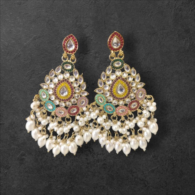 Fancy Kundan or Polki Earrings are exquisite pieces of traditional Indian jewelry that blend timeless elegance with intricate craftsmanship. Kundan earrings feature glass stones set in gold foil, renowned for their radiant shine and detailed designs. In contrast, Polki earrings showcase uncut natural diamonds, offering a raw, antique appeal with minimal processing. These earrings often incorporate elements like pearls, meenakari (enamel work), and vibrant gemstones, enhancing their opulence. Ideal for weddings, festivals, and cultural celebrations, Fancy Kundan or Polki Earrings add a regal touch to any ensemble, making them a cherished addition to any jewelry collection.