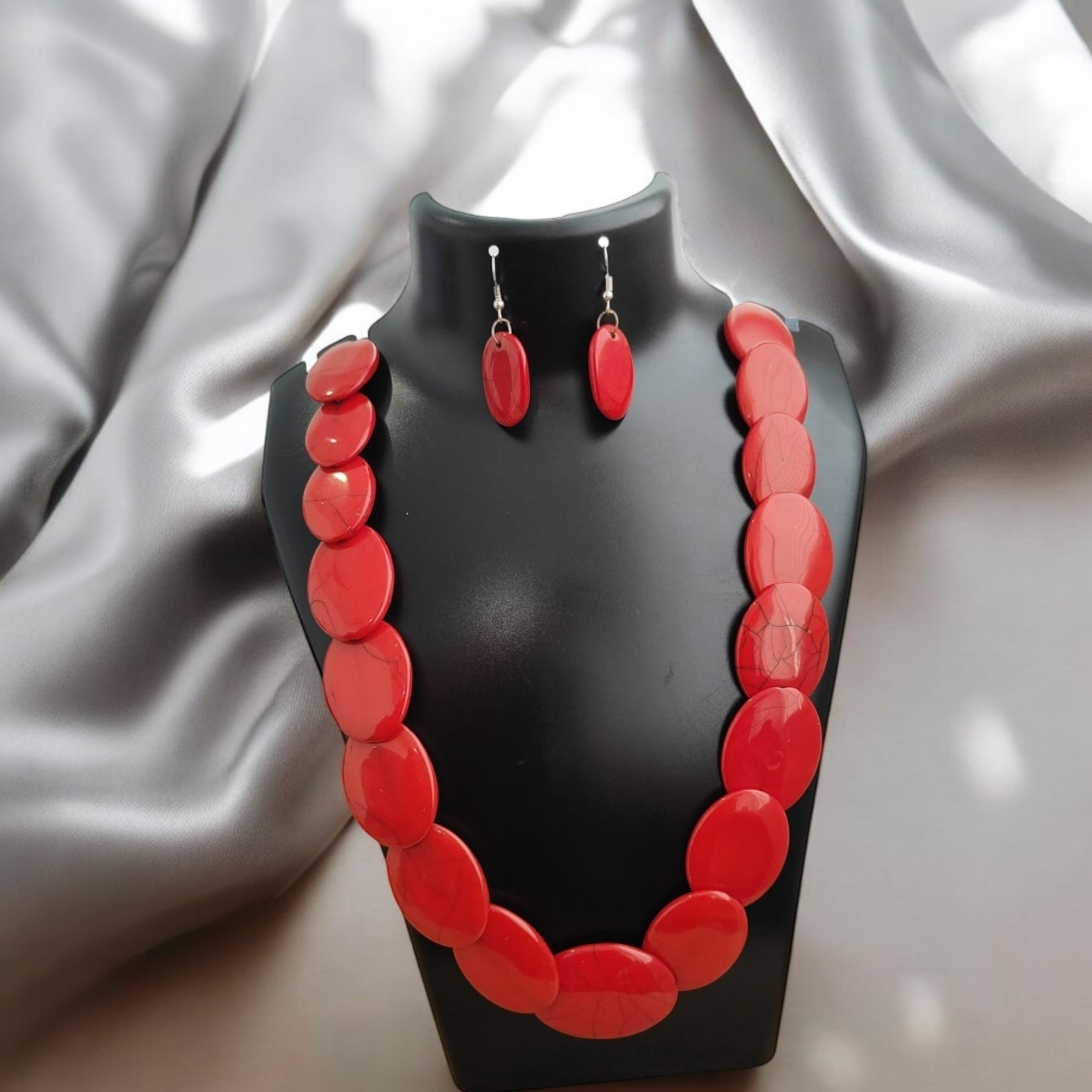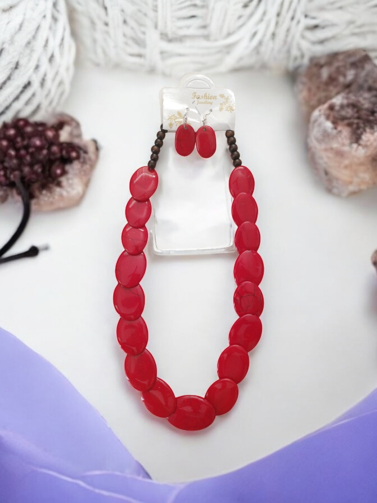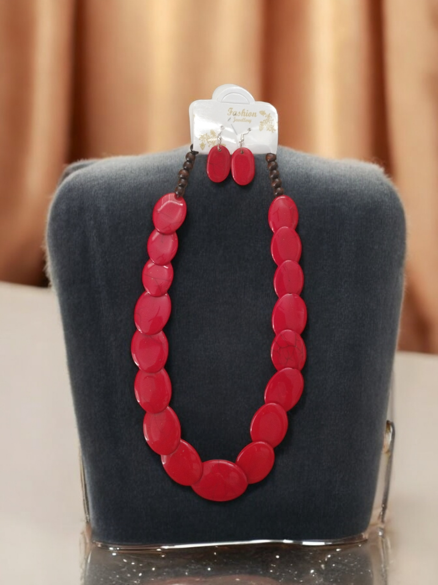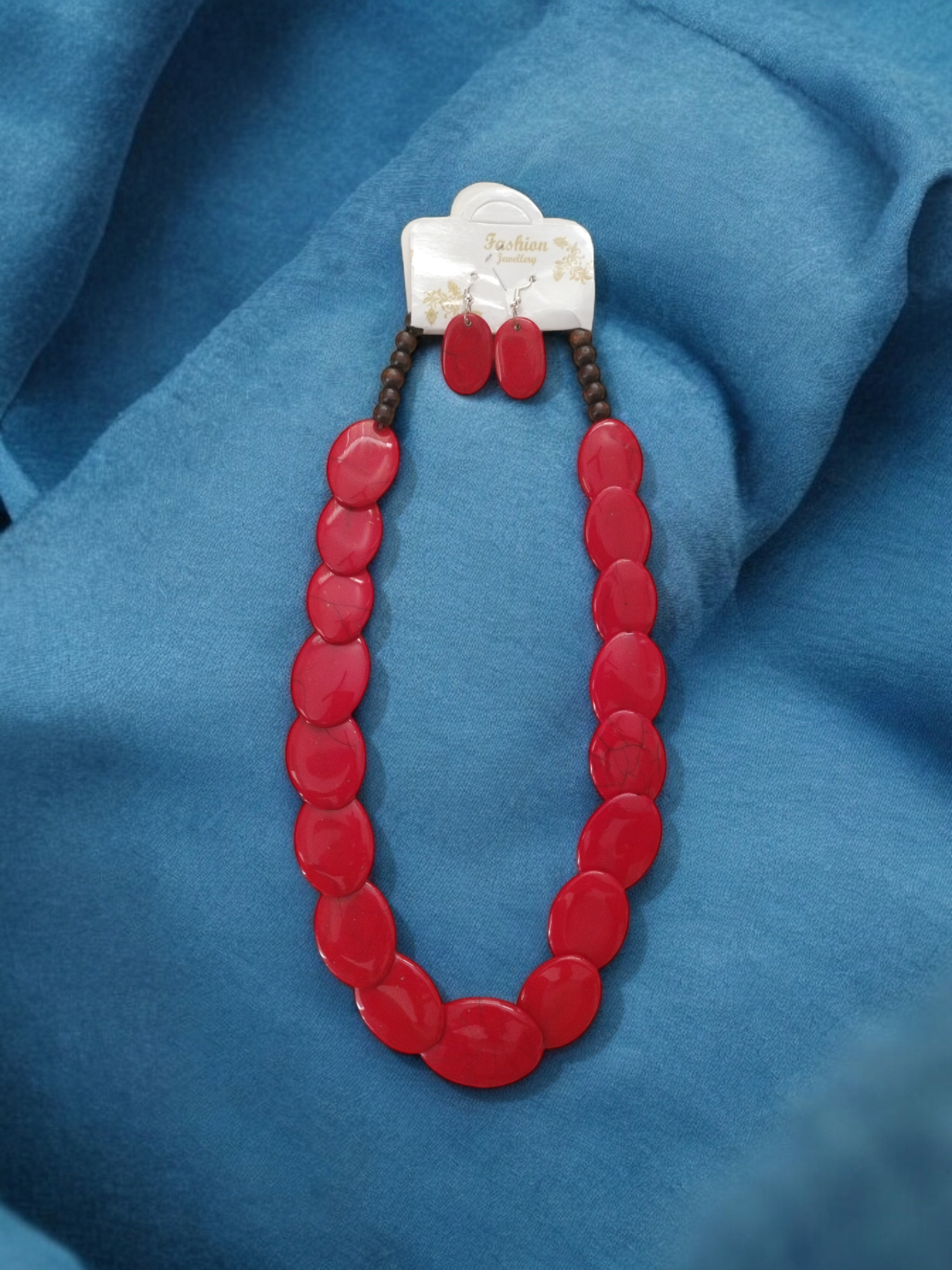 Elegant Fancy Resin Red Necklace Set with oval-shaped red resin stones. Perfect for parties, special occasions, and everyday style! ✨