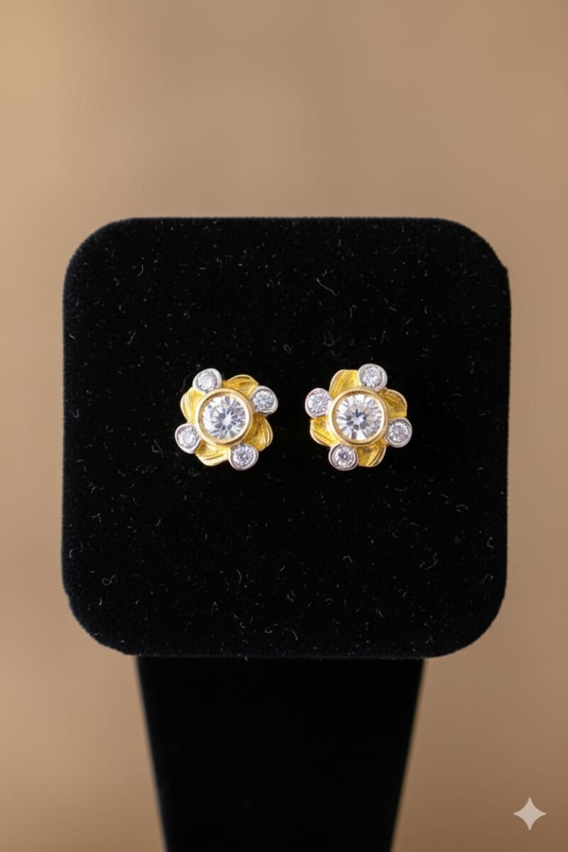G1 gold Flowery Kundan Earring Studs