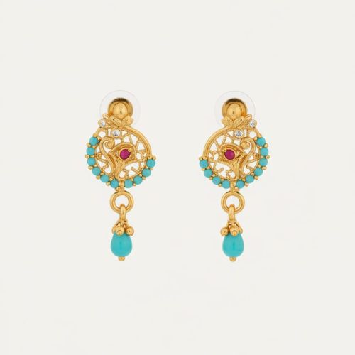 Add a touch of elegance to your ensemble with these stunning gold-plated fancy earrings. Designed to impress, they feature intricate detailing and a radiant gold finish that exudes sophistication and charm. Perfect for weddings, parties, and festive occasions, these earrings elevate both traditional and contemporary outfits with effortless grace. Lightweight and comfortable to wear, they offer a secure fit and lasting shine, making them ideal for all-day use. Whether you’re making a fashion statement or looking for the perfect gift, these gold-plated fancy earrings bring timeless beauty and refined style to any jewelry collection. A must-have accessory for every occasion.
