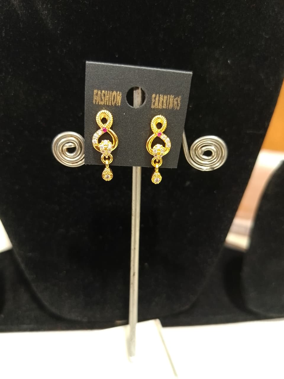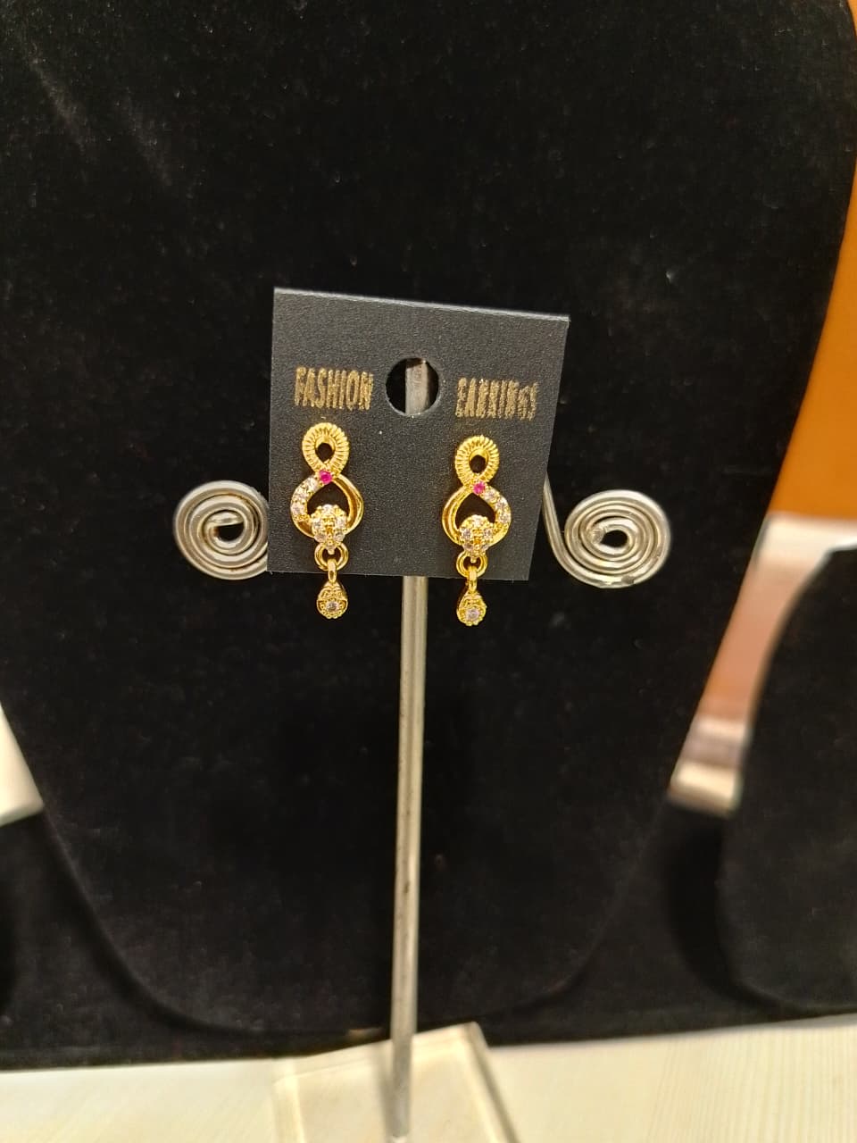 gold-plated fashion earrings featuring a distinctive design with red and white American Diamond or Cubic Zirconia stones