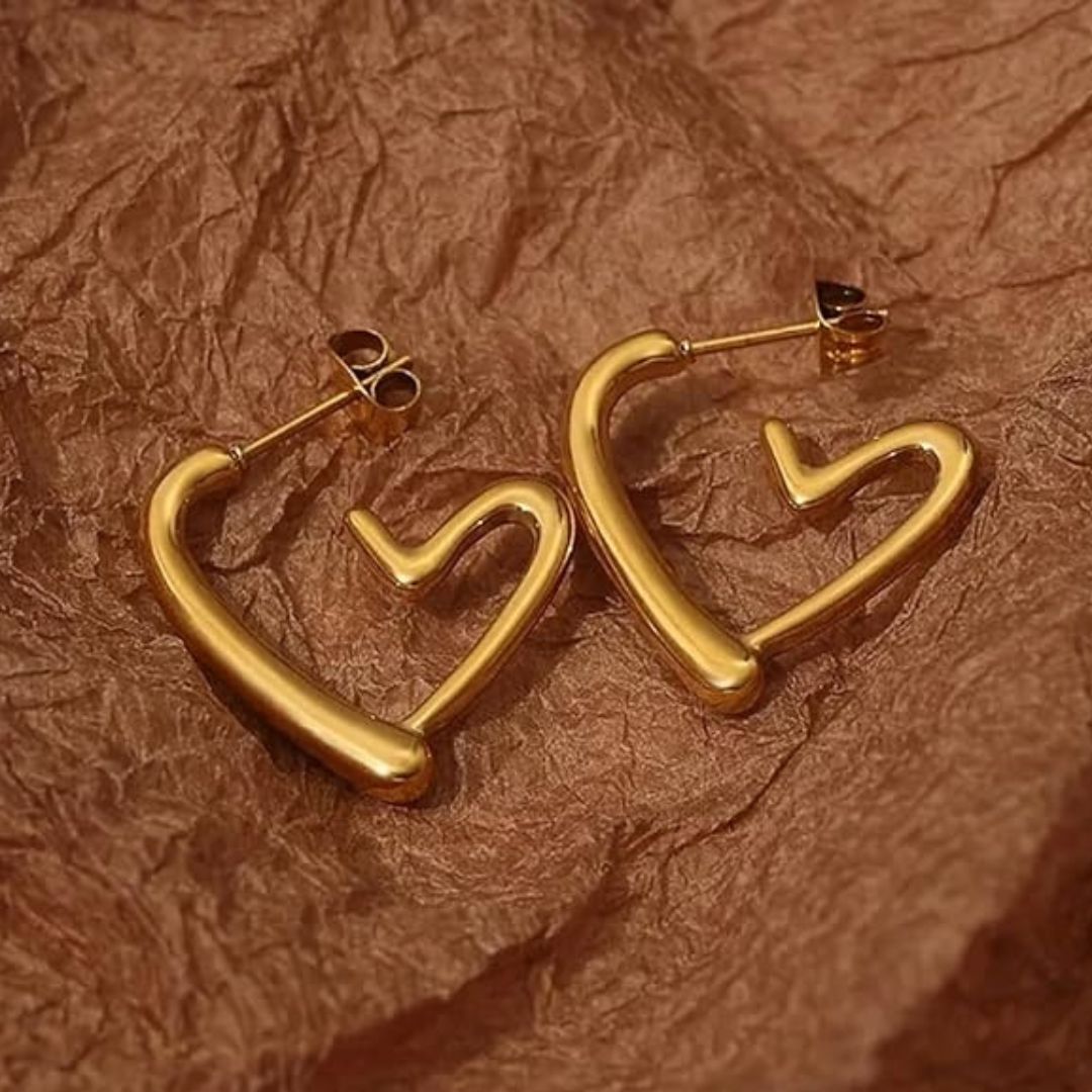 Add a touch of charm and elegance to your look with these Gold-Plated Heart Shaped Half Hoop Earrings. Featuring a sleek half-hoop design formed into a delicate heart shape, these earrings blend modern minimalism with romantic flair. The gold-plated finish offers a luxurious shine, making them a versatile accessory for both casual outfits and special occasions. Lightweight and comfortable to wear, they add a subtle yet stylish statement to any ensemble. Whether you’re dressing up for a date night or adding polish to your everyday look, these earrings are a perfect blend of sweetness and sophistication. A lovely gift option, too.