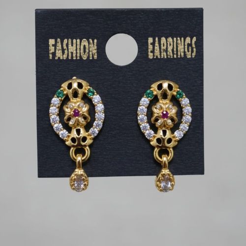 187gold-plated stud earrings with a dangling drop, adorned with cubic zirconia (AD stones).