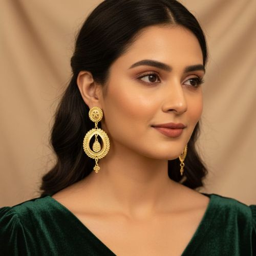 Embrace timeless elegance with these Gold-Plated Traditional Indian Drop Earrings, beautifully designed in a leaf motif or classic Rajkot style. These earrings showcase intricate craftsmanship, featuring delicate detailing that reflects rich Indian heritage and artistry. The radiant gold-plated finish enhances their traditional charm, making them the perfect accessory for weddings, festivals, or cultural celebrations. Lightweight and comfortable, they are ideal for extended wear without compromising on style. Whether paired with sarees, lehengas, or fusion attire, these earrings add a graceful and regal touch to any ensemble. A must-have for lovers of ethnic jewellery, they also make a thoughtful, elegant gift.
