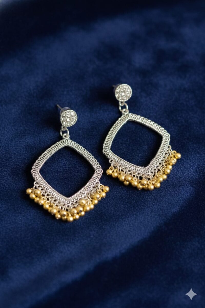 Make a bold style statement with these stunning Gold Square Jhumka Earrings, a unique twist on a traditional favorite. Expertly crafted in radiant gold, these earrings feature an elegant square-shaped stud that beautifully contrasts with the classic bell-shaped jhumka drop. Intricate detailing and fine craftsmanship add depth and charm to the design, making them a standout accessory for festive occasions, weddings, or cultural celebrations. Lightweight yet luxurious, they offer comfort without compromising on elegance. Perfect to pair with both traditional and fusion outfits, these Gold Square Jhumka Earrings are a must-have addition to any jewellery collection that values timeless beauty.