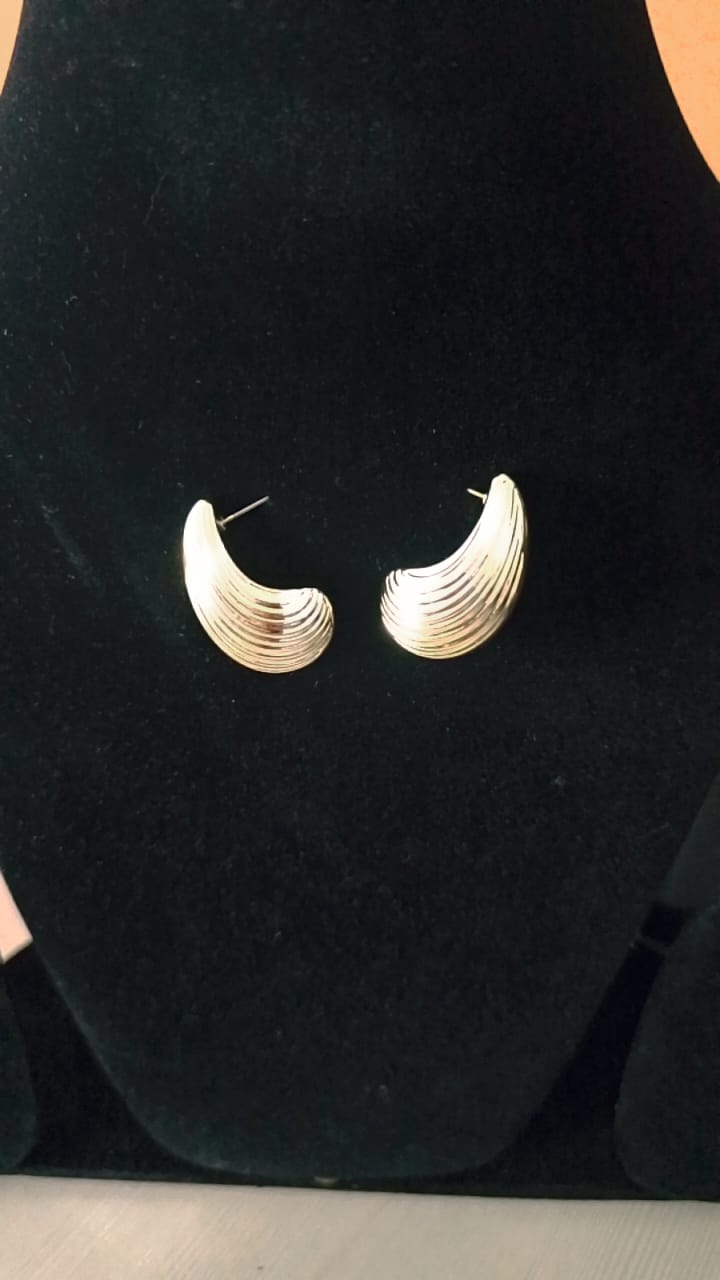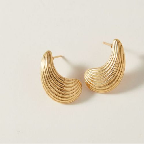 Add a touch of vintage charm to your look with these gold-toned, ribbed teardrop or shell-shaped earrings. Elegantly designed, each earring features a textured, ribbed surface that catches the light beautifully, highlighting the graceful curves of the teardrop or shell silhouette. The warm gold tone adds a classic, sophisticated feel, making them perfect for both casual and dressy occasions. Lightweight and comfortable, these earrings are crafted for all-day wear without compromising on style. Their unique shape and timeless finish make them a standout accessory in any jewellery collection. Ideal for gifting or personal use, they offer understated elegance with a bold twist.