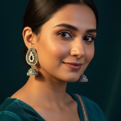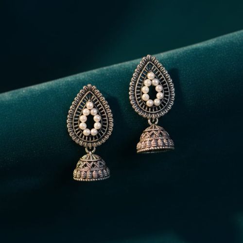 Add a regal touch to your ethnic ensemble with these Golden Oxidised Jhumki earrings, a perfect blend of traditional charm and antique elegance. Crafted with intricate detailing, these jhumkis feature a classic bell-shaped design enhanced by a rich golden oxidised finish that gives them a unique vintage appeal. Lightweight and comfortable, they sway beautifully with every movement, making them ideal for festive occasions, weddings, or everyday ethnic wear. Pair them effortlessly with sarees, lehengas, or kurtis to complete your look. These Golden Oxidised Jhumkis are a must-have for anyone who appreciates timeless beauty with a bold, graceful edge.