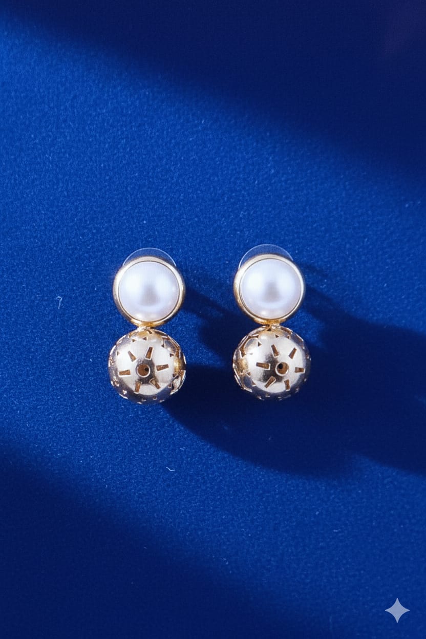 Add a touch of timeless elegance to your ensemble with the JJK-37 Golden Round Pearl Earrings. Featuring classic round pearls set in a radiant golden finish, these earrings beautifully blend sophistication with modern charm. The lustrous pearls exude grace, while the gold accents add a warm, luxurious glow to any look. Perfect for both everyday wear and special occasions, their lightweight design ensures comfort without compromising style. Whether paired with casual attire or formal wear, the JJK-37 earrings elevate your outfit with subtle refinement. A must-have accessory for any jewelry lover who appreciates classic beauty with a contemporary twist.