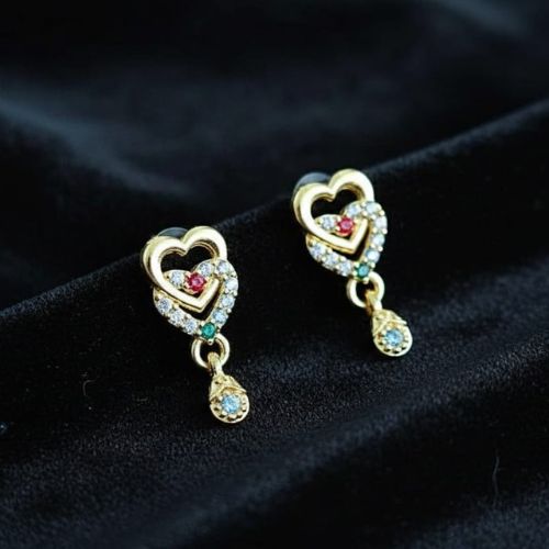 Fall in love with elegance through these heart-shaped, gold-toned drop earrings, beautifully embellished with sparkling stones. Designed to capture both charm and sophistication, each earring features a graceful heart motif that dangles delicately, adding a romantic flair to your look. The shimmering stones catch the light effortlessly, offering a radiant sparkle with every movement. Lightweight and comfortable, these earrings are perfect for both everyday wear and special occasions. Whether you’re dressing up for a date night or gifting someone dear, these gold-toned heart drop earrings are a timeless piece that adds warmth, beauty, and a touch of love to any outfit.