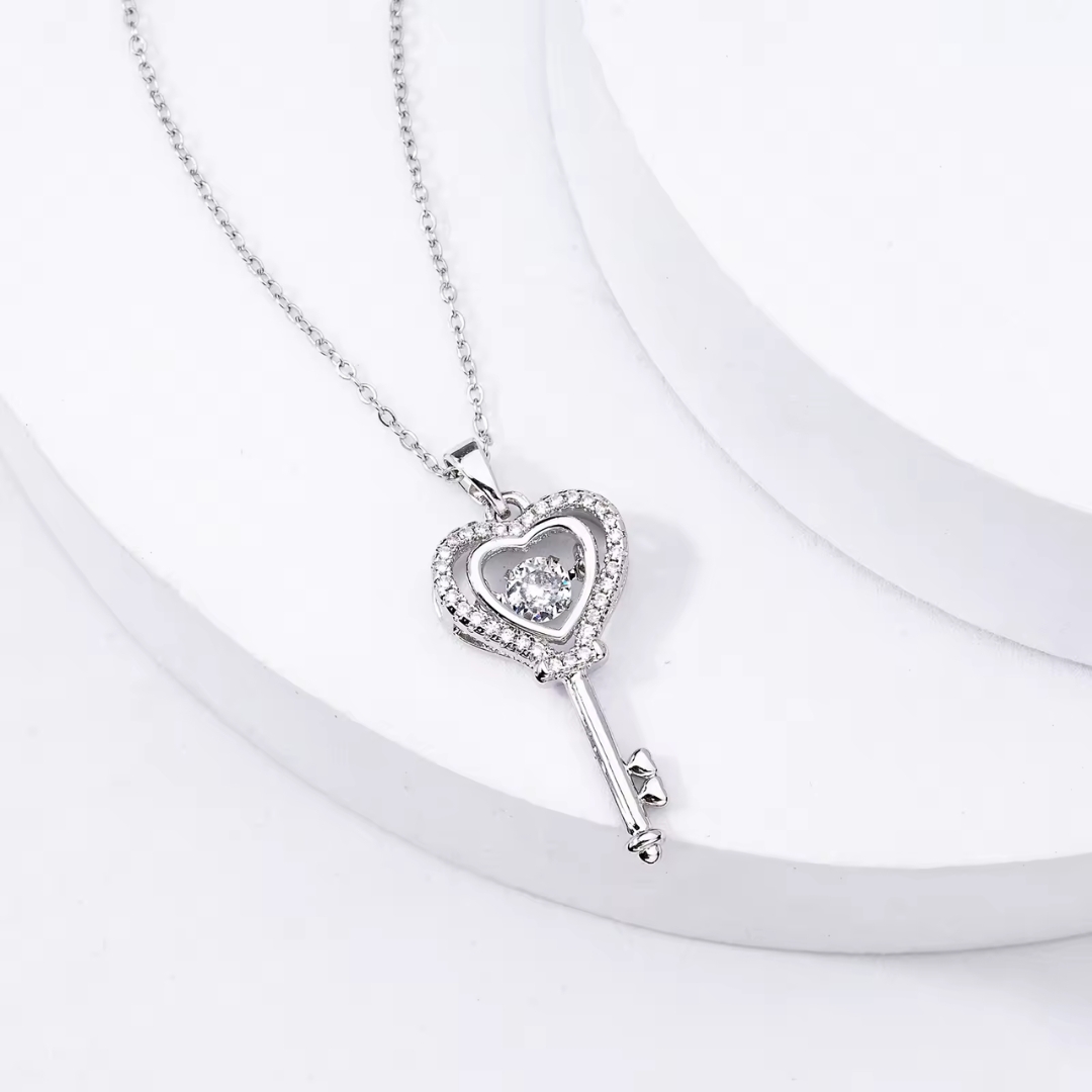 Unlock elegance and romance with the Jeulia Heart Key Sterling Silver Necklace, a beautifully crafted piece symbolizing love and new beginnings. Featuring a delicate heart-shaped pendant paired with a charming key design, this necklace embodies the timeless connection between two hearts. Made from high-quality sterling silver, it offers lasting shine and durability. The intricate detailing adds a touch of sophistication, while the adjustable chain ensures a perfect fit. Perfect for everyday wear or special occasions, this necklace makes a meaningful gift for loved ones or a stylish addition to your own collection. Celebrate love with this enchanting and elegant accessory.