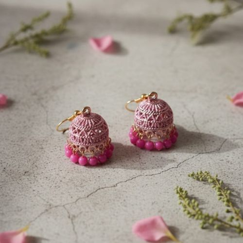 Adorn yourself with elegance and tradition wearing these beautiful Jhumka earrings — a timeless piece of Indian jewelry with centuries of heritage. Shaped like a graceful bell, each pair features intricate detailing often enhanced with filigree work, beads, pearls, or tiny dangling elements that delight with every movement. Originally seen in ancient temple jewelry and classical dance costumes, jhumkas are now a favorite for weddings, festivals, and special occasions. Their hollow underside makes them lightweight yet striking. With a design that balances ornate craftsmanship and feminine charm, these earrings are perfect for elevating both ethnic and fusion outfits effortlessly.