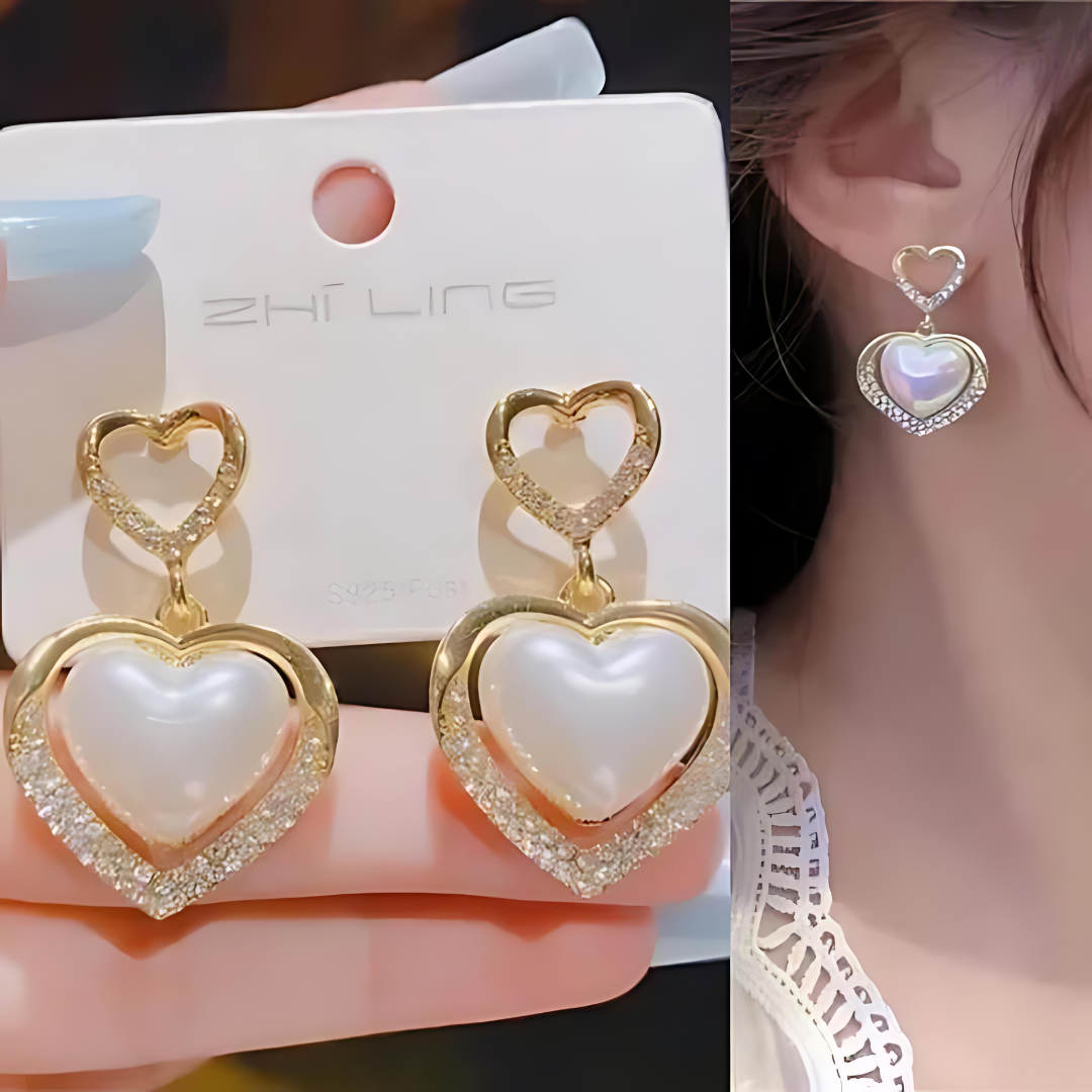Celebrate love and elegance with the Gold-Plated Korean Marvelous Dual Hearts Pearl Drop Earrings. These exquisite earrings feature two intertwined heart designs, beautifully gold-plated to exude warmth and luxury. Dangling beneath each heart is a luminous faux pearl, adding timeless sophistication and gentle movement. Perfectly balancing modern style with romantic charm, these earrings capture the essence of Korean craftsmanship and fashion. Lightweight and comfortable, they effortlessly enhance any outfit—from everyday wear to special occasions. Embrace the delicate beauty and heartfelt symbolism of these dual hearts earrings, a stunning accessory that adds grace and sparkle to your jewelry collection.