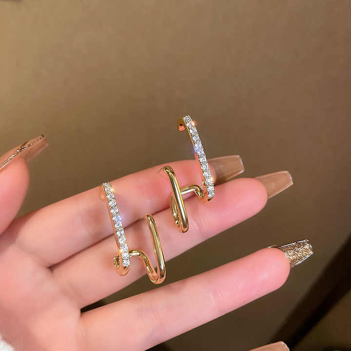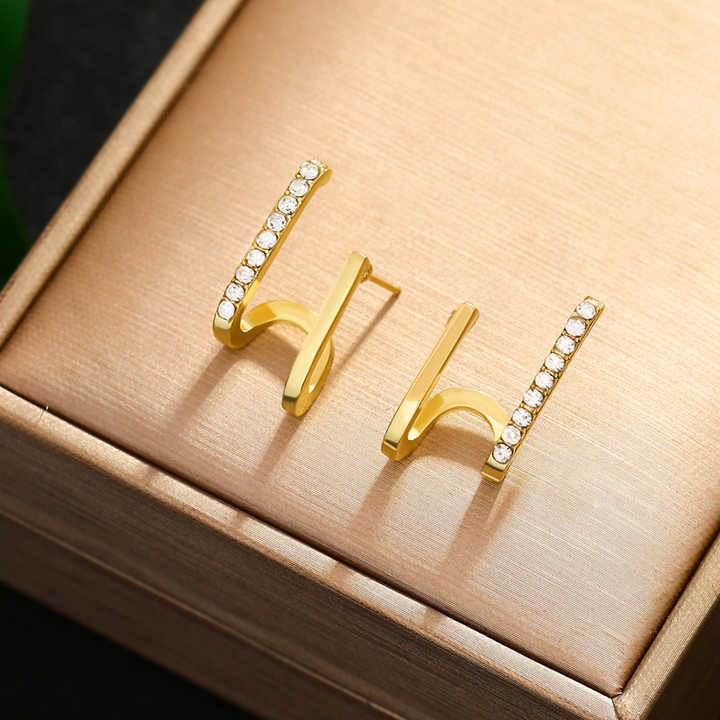 Embrace modern elegance with the Korean Style Gold-Plated U-Shape Cubic Zirconia Stud Earrings, a stunning blend of minimalism and sparkle. Crafted with a sleek U-shaped design, these earrings are gold-plated for a luxurious finish and adorned with brilliant cubic zirconia stones that catch the light with every turn. Lightweight and comfortable, they are perfect for everyday wear or adding a refined touch to special occasions. Their contemporary style reflects the clean lines and sophisticated aesthetic of Korean fashion. Whether worn alone or paired with other pieces, these earrings offer timeless beauty with a modern twist—perfect for the stylish woman.