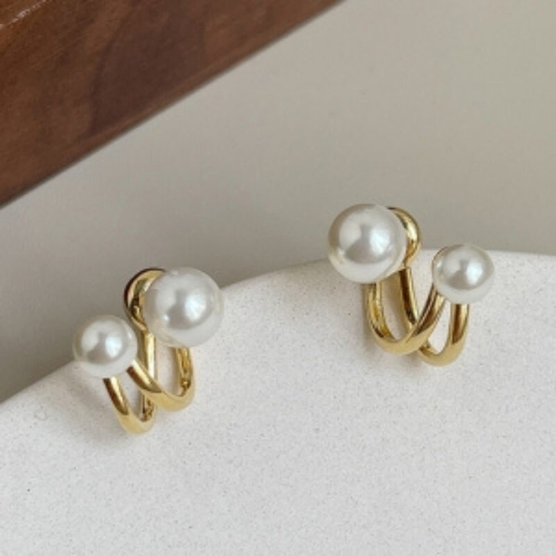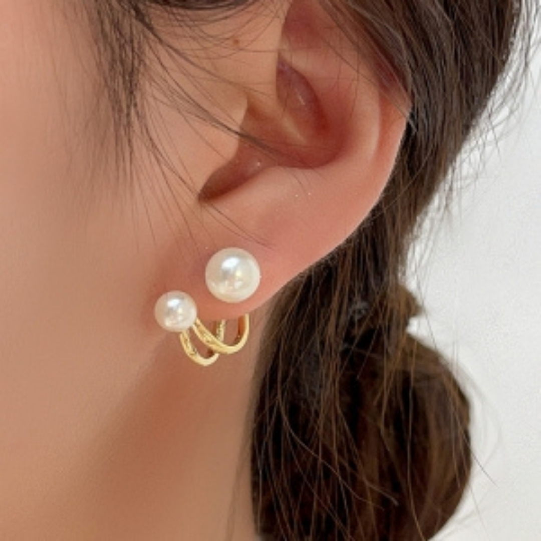 Add a touch of modern elegance to your look with our Korean Style Gold-Toned Dual Pearl Stud Earrings. Featuring a minimalist yet chic design, these earrings showcase two lustrous faux pearls—one on the front and a slightly larger one at the back—creating a stylish layered effect that’s uniquely contemporary. The warm gold-toned setting enhances their sophisticated appeal, making them perfect for both everyday wear and special occasions. Lightweight and comfortable, they offer a secure fit and timeless charm. Inspired by popular Korean fashion, these earrings bring subtle glamour and versatility to any outfit. A must-have accessory for effortless elegance.
