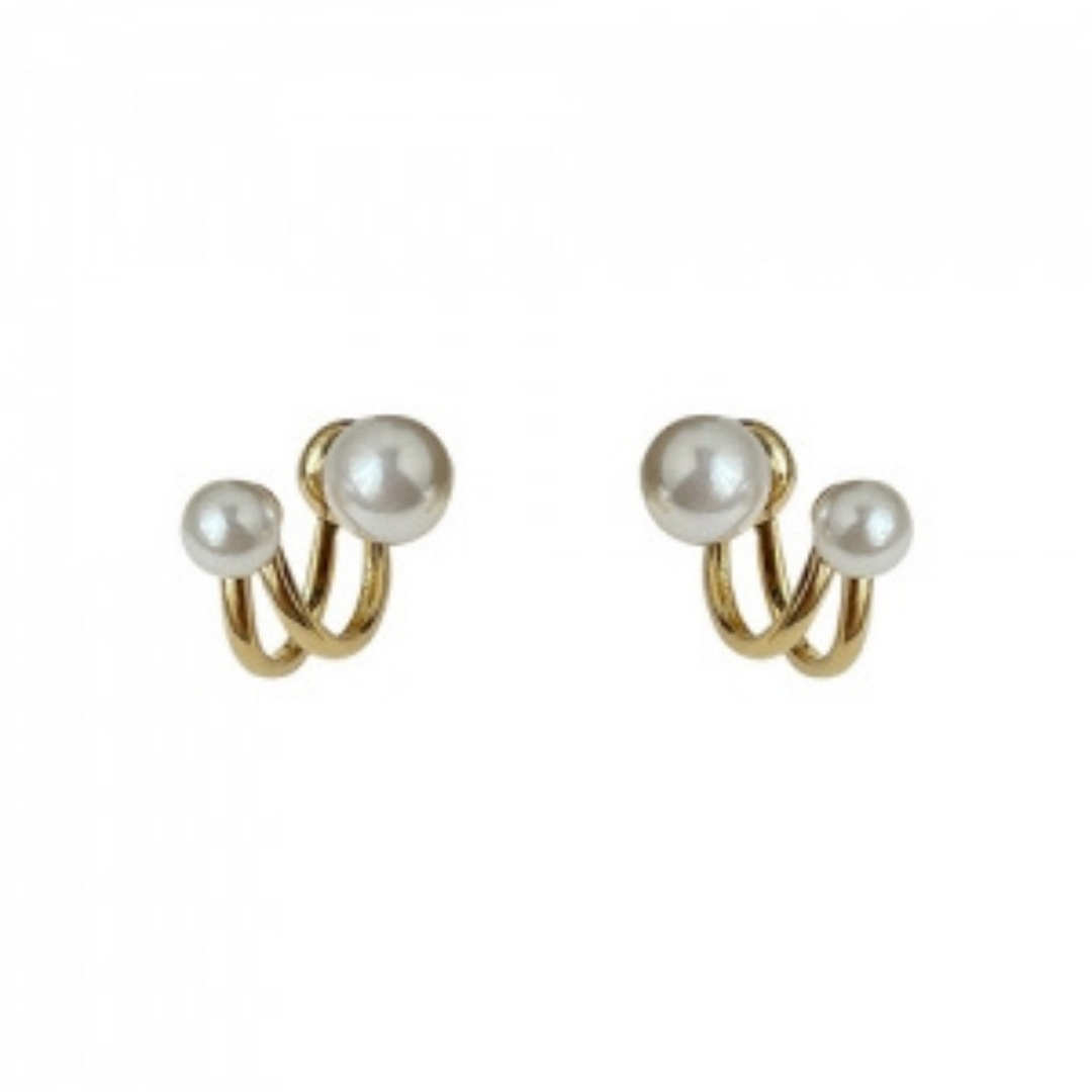 Korean Style Gold-Toned Dual Pearl Stud Earrings