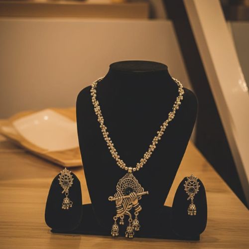 271 Krishna Flute Oxidised Set