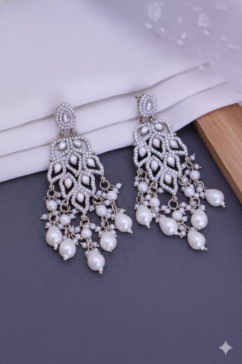 These Kundan and pearl-drop earrings combine tradition and elegance in one dazzling piece. Beautifully crafted with brilliant Kundan stones that catch the light, the earrings are enhanced by graceful pearl drops that sway with every movement. The intricate detailing around the Kundan setting reflects classic Indian craftsmanship, while the pearls soften the design with their timeless glow. Perfect for weddings, festivities, or any occasion that calls for a touch of regal charm, these earrings pair beautifully with ethnic outfits like sarees and lehengas. Lightweight and eye-catching, they add sophistication without compromising comfort.
