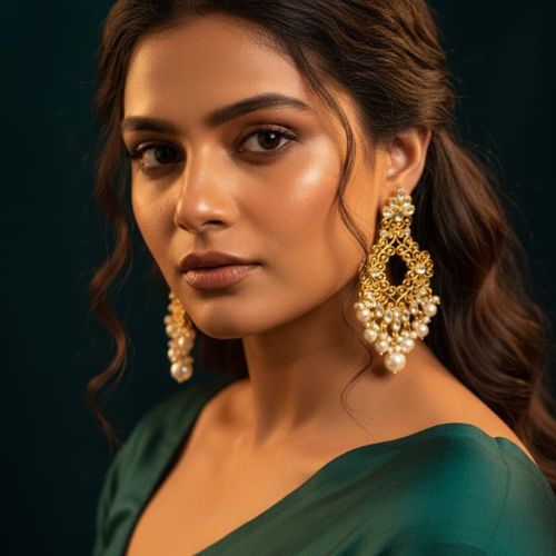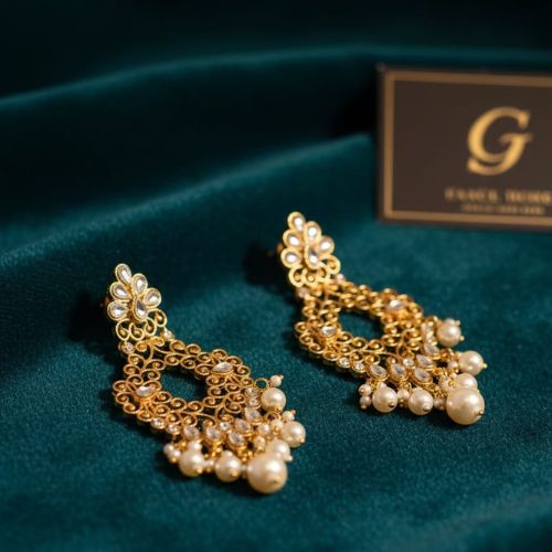 Add a touch of royal elegance to your ensemble with these exquisite Kundan earrings featuring a matte gold finish and delicate pearl accents. Expertly crafted, the earrings showcase traditional Kundan work that reflects timeless Indian craftsmanship. The soft matte gold tone gives a subtle yet luxurious appeal, while the dangling pearls add grace and sophistication. Perfect for weddings, festive occasions, or cultural celebrations, these earrings pair beautifully with both traditional and fusion outfits. Lightweight and intricately designed, they offer comfort without compromising on style. Elevate your jewelry collection with these stunning Kundan earrings that embody heritage and elegance in every detail.