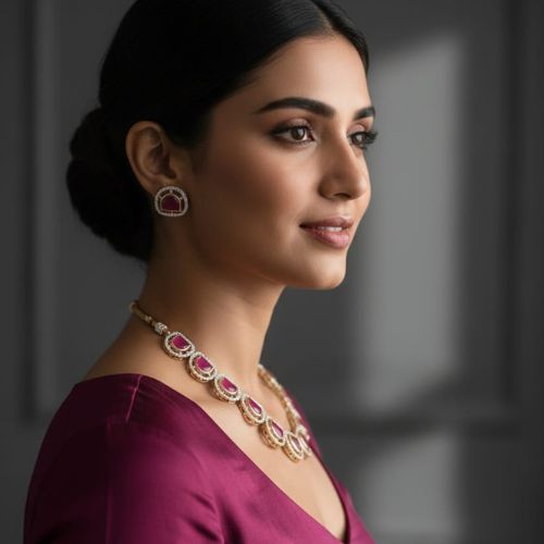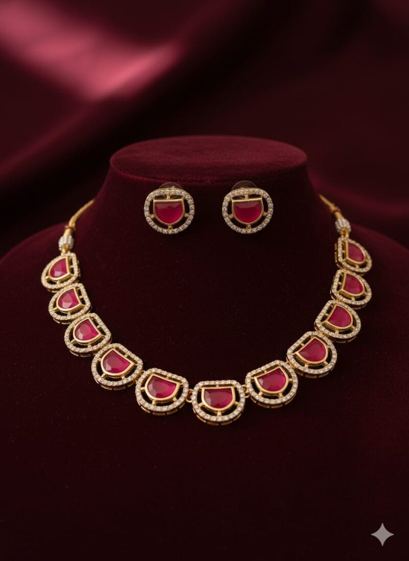 280 Kundan necklace with ruby-like red stones and matching earrings