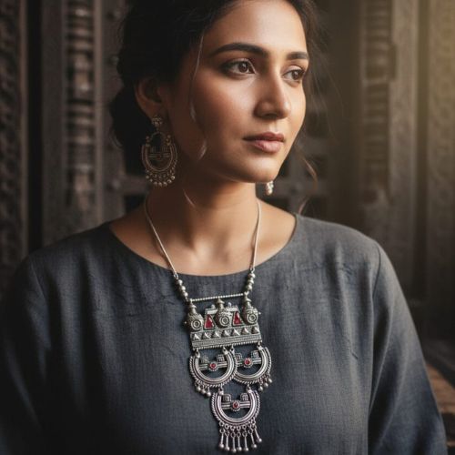Celebrate vibrant artistry with this exquisite Meenakari Jewellery Set, a perfect blend of traditional craftsmanship and colorful elegance. Featuring intricate enamel work in vivid hues, this set beautifully highlights the age-old Indian art of meenakari, adding a splash of color and sophistication to your ensemble. The set includes a stunning necklace paired with matching earrings, designed to complement festive occasions, weddings, and cultural celebrations. Lightweight and comfortable, it pairs effortlessly with sarees, lehengas, and ethnic wear. Infuse your jewelry collection with timeless beauty and cultural richness through this vibrant meenakari set that promises to brighten every outfit with its dazzling charm.