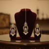 The Mystic Leaf AD Necklace Set is a stunning fusion of elegance and nature-inspired design. Crafted with precision, this set features delicate leaf motifs adorned with shimmering American Diamonds (AD) that reflect light beautifully, creating a captivating sparkle. The intricate detailing adds a touch of sophistication, making it perfect for both festive occasions and evening events. Paired with matching earrings, the set offers a balanced and graceful look that complements ethnic and contemporary outfits alike. Lightweight and stylish, the Mystic Leaf AD Necklace Set is a timeless accessory that brings charm, grace, and a hint of nature’s beauty to your collection.