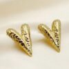 Golden ribbed heart stud earrings bring timeless romance with a modern edge. Crafted in a warm gold-tone finish, each petite heart features delicate ribbed texture that catches the light beautifully. The sculpted design adds depth and dimension while remaining lightweight and comfortable for all-day wear. Perfect for everyday styling or special occasions, these studs pair effortlessly with casual outfits or elegant ensembles. Their secure post-back closure ensures a confident fit. Sweet yet sophisticated, golden ribbed heart studs make a thoughtful gift for birthdays, anniversaries, or self-indulgent treats, adding a subtle glow and heartfelt charm to any jewelry collection worldwide appeal.