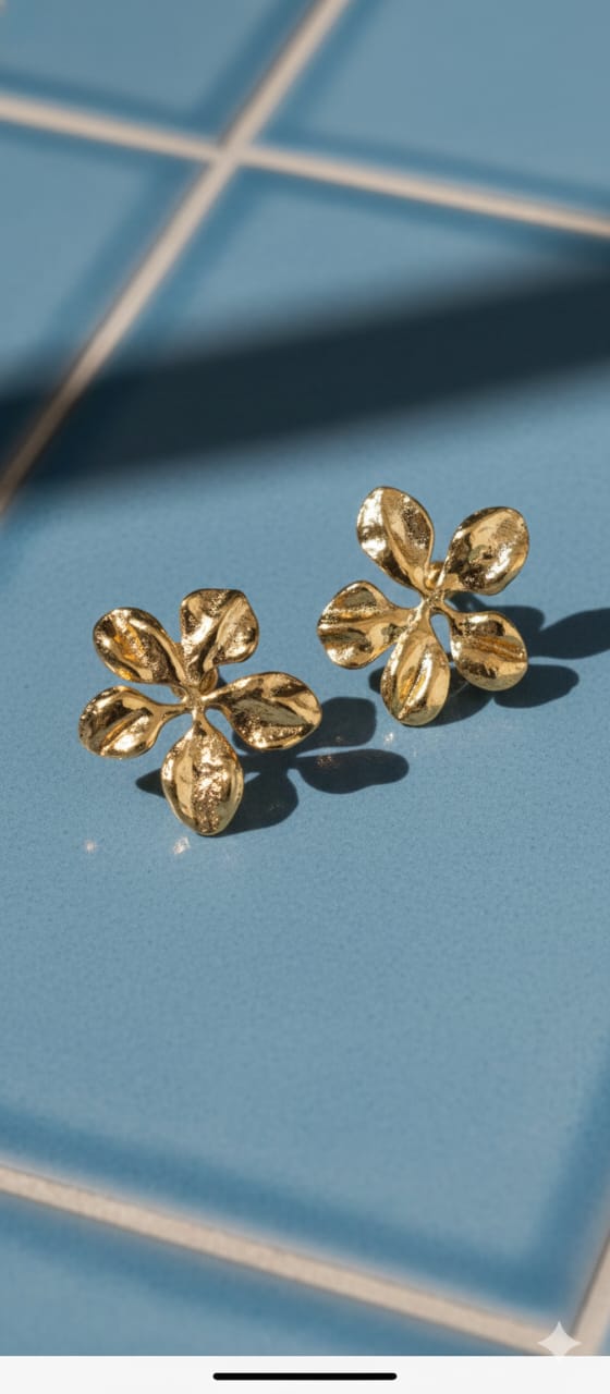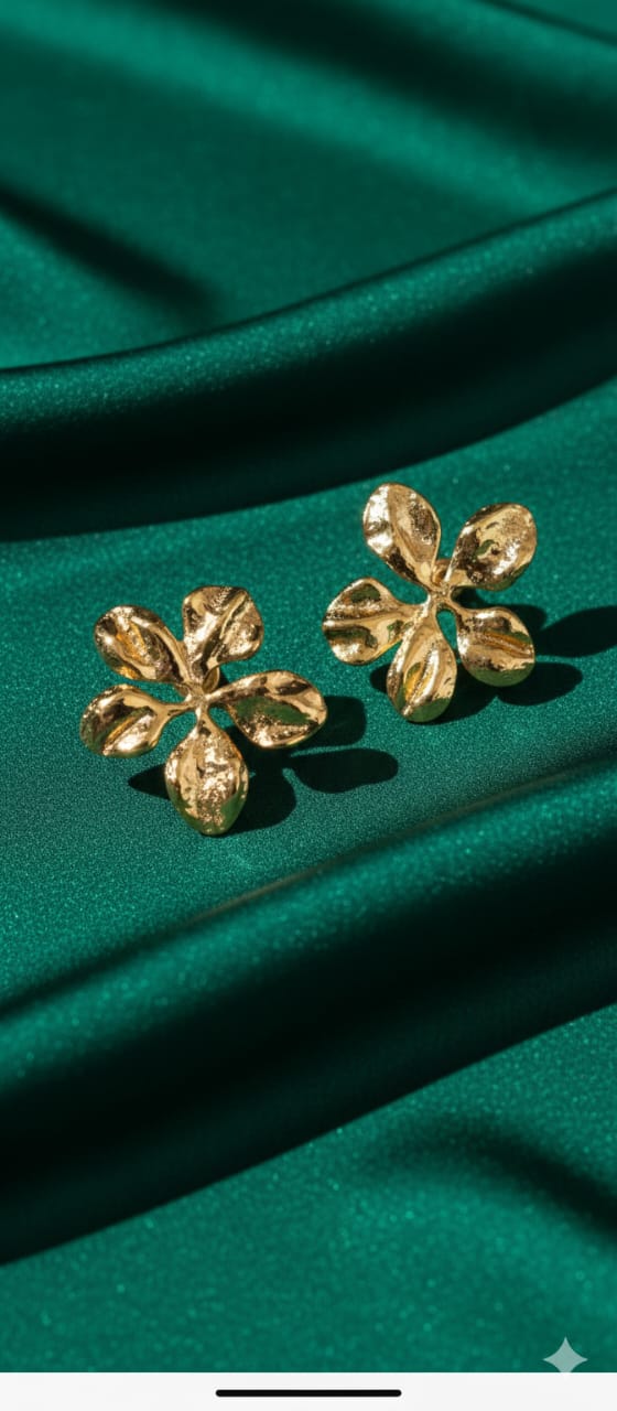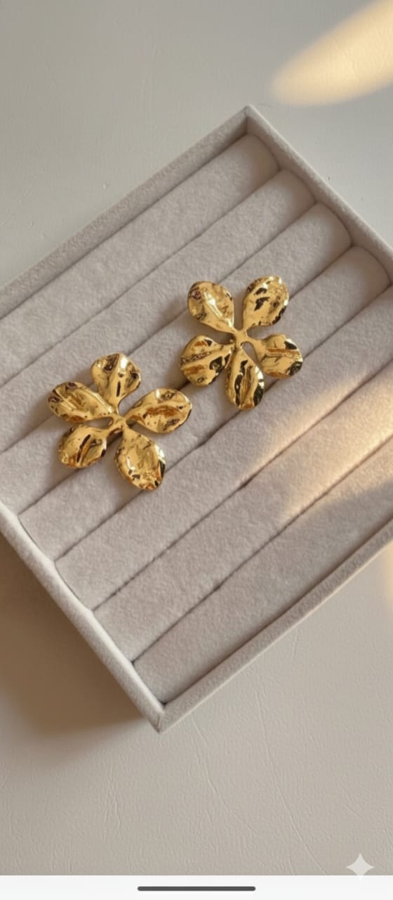 Similar stylish gold floral earrings capture feminine elegance with a modern, fashion-forward appeal. Crafted in a radiant gold-tone finish, these earrings feature delicately shaped floral motifs that add charm and sophistication. The refined detailing enhances their visual texture, allowing them to catch the light beautifully with every movement. Lightweight and comfortable, they are designed for effortless all-day wear. Perfect for both casual looks and dressier occasions, these floral earrings add a graceful touch to any outfit. Timeless yet trendy, they make a lovely gift choice or a versatile addition to any jewelry collection.