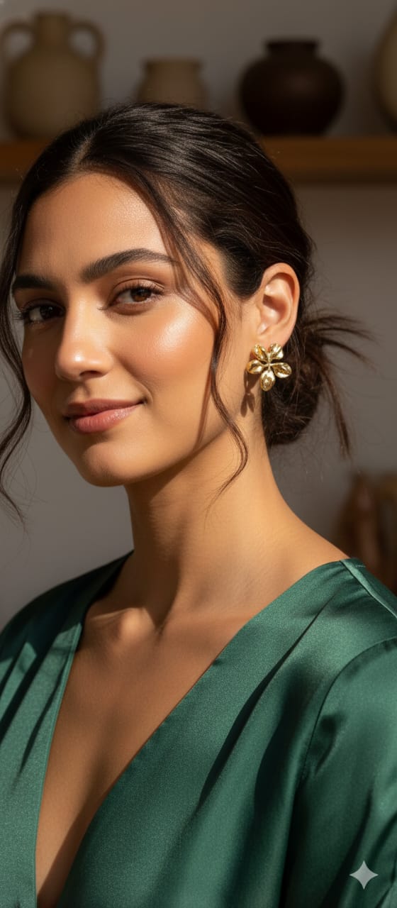N15 similar stylish gold floral earrings