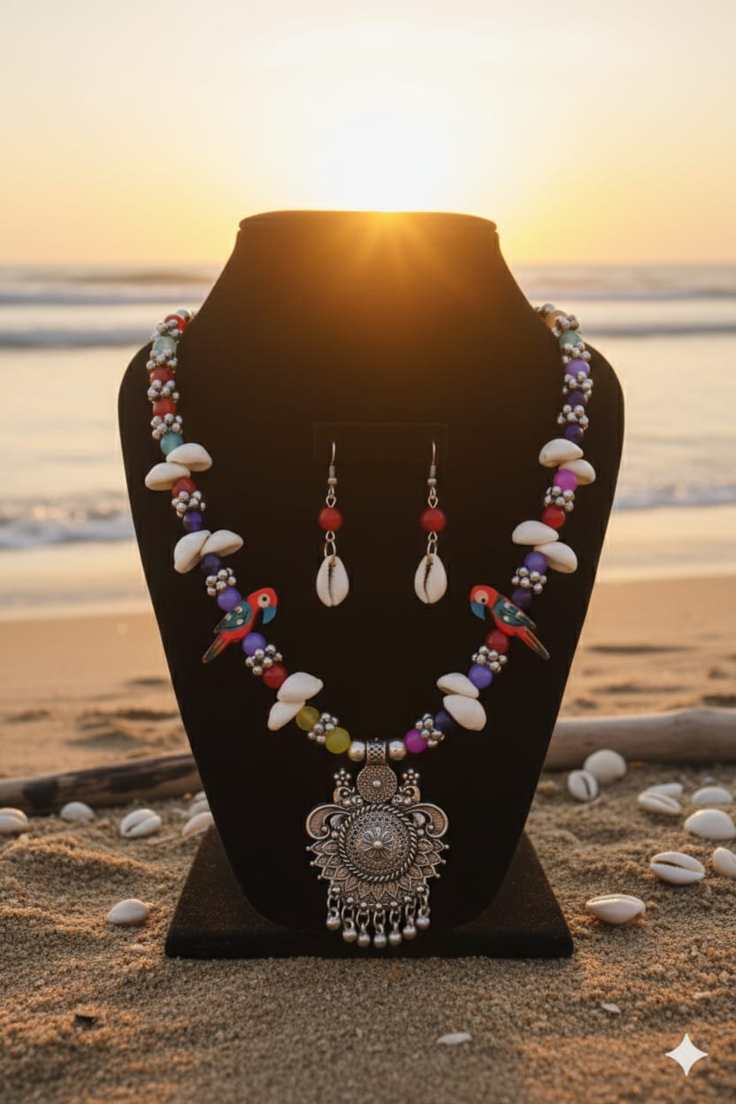 334 Navratri Special! Multicolor German Silver Shell & Thread Beads Necklace Set