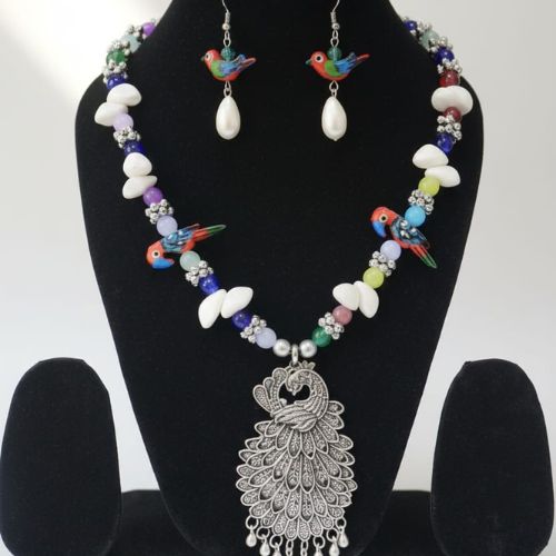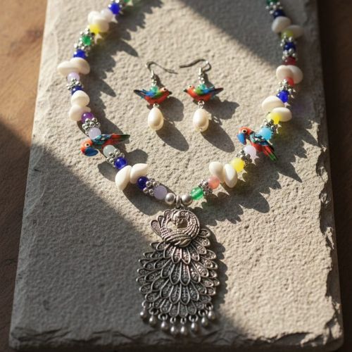 Celebrate the spirit of Navratri with this stunning Traditional Necklace & Earrings Set, specially designed for the festive season. Rich in cultural charm, this set features intricate detailing and vibrant colors that perfectly complement traditional attire like chaniya cholis and sarees. The necklace is adorned with ethnic motifs and colorful beads, while the matching earrings complete the look with elegance and grace. Lightweight and comfortable, this set is ideal for dancing through Garba nights or attending festive gatherings. Add a touch of heritage and festive flair to your jewelry collection with this Navratri special set – a true celebration of tradition and style.