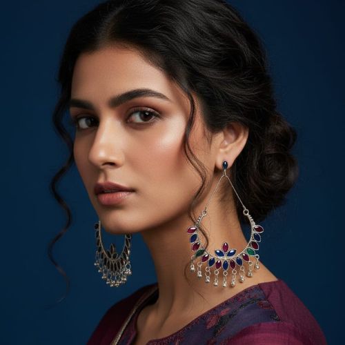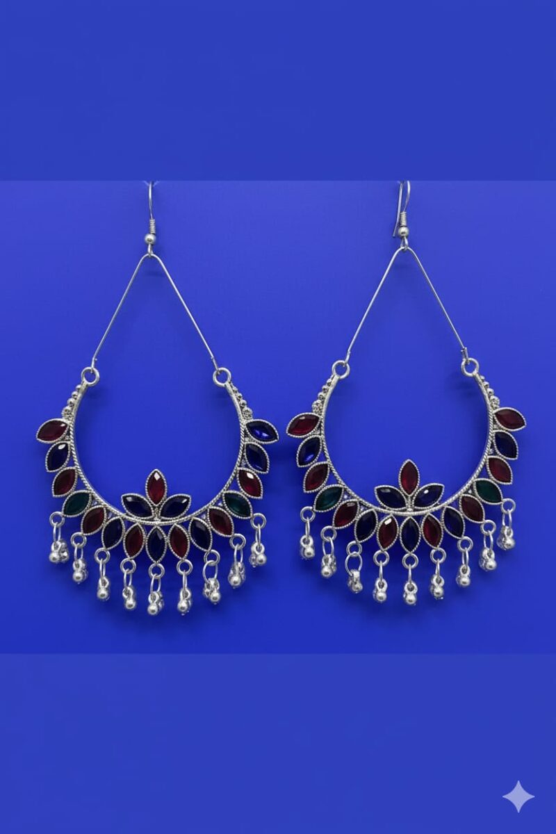 Brighten up your jewelry collection with the vibrant Oo 2 Multi-Colour Jhumki, a stunning fusion of tradition and playful charm. These beautifully crafted jhumkis feature intricate oxidised detailing, enhanced with colorful accents that add a lively pop to any outfit. The classic bell-shaped design is adorned with multi-hued beads, making it a perfect accessory for festive events, cultural celebrations, or casual ethnic wear. Lightweight and easy to wear, they sway gracefully with every step, offering both comfort and style. Pair them with a kurti, saree, or lehenga to create a joyful, eye-catching look that’s full of personality and elegance.