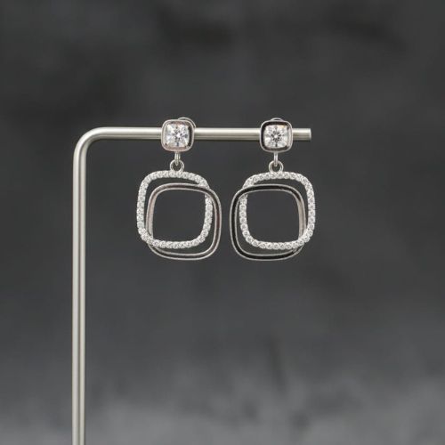 341 OOMPH Black and White Crystal Square Drop Earrings