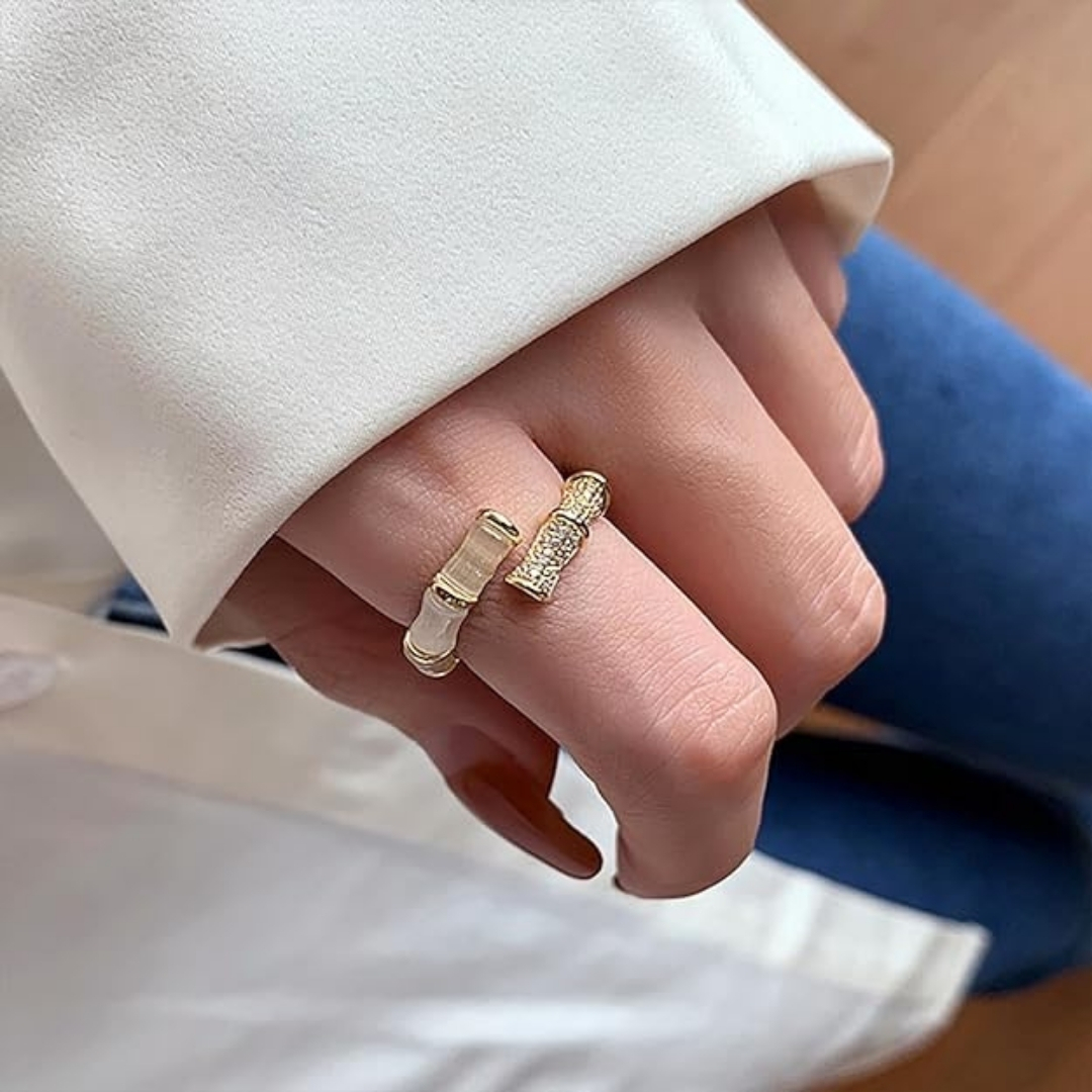 Embrace celestial elegance with our Opal Galaxy Bamboo Design Gold-Plated Alloy Ring. This unique piece features a luminous opal stone at its center, radiating cosmic beauty with every flicker of light. The intricate bamboo-inspired band, finished in rich gold plating, adds a natural, organic touch to the ring’s ethereal charm. Crafted from durable alloy, it combines style and strength for everyday wear or special occasions. Whether you’re drawn to its galaxy-like shimmer or the symbolic bamboo design representing growth and resilience, this ring is a perfect blend of nature and elegance—an eye-catching addition to any jewelry collection.