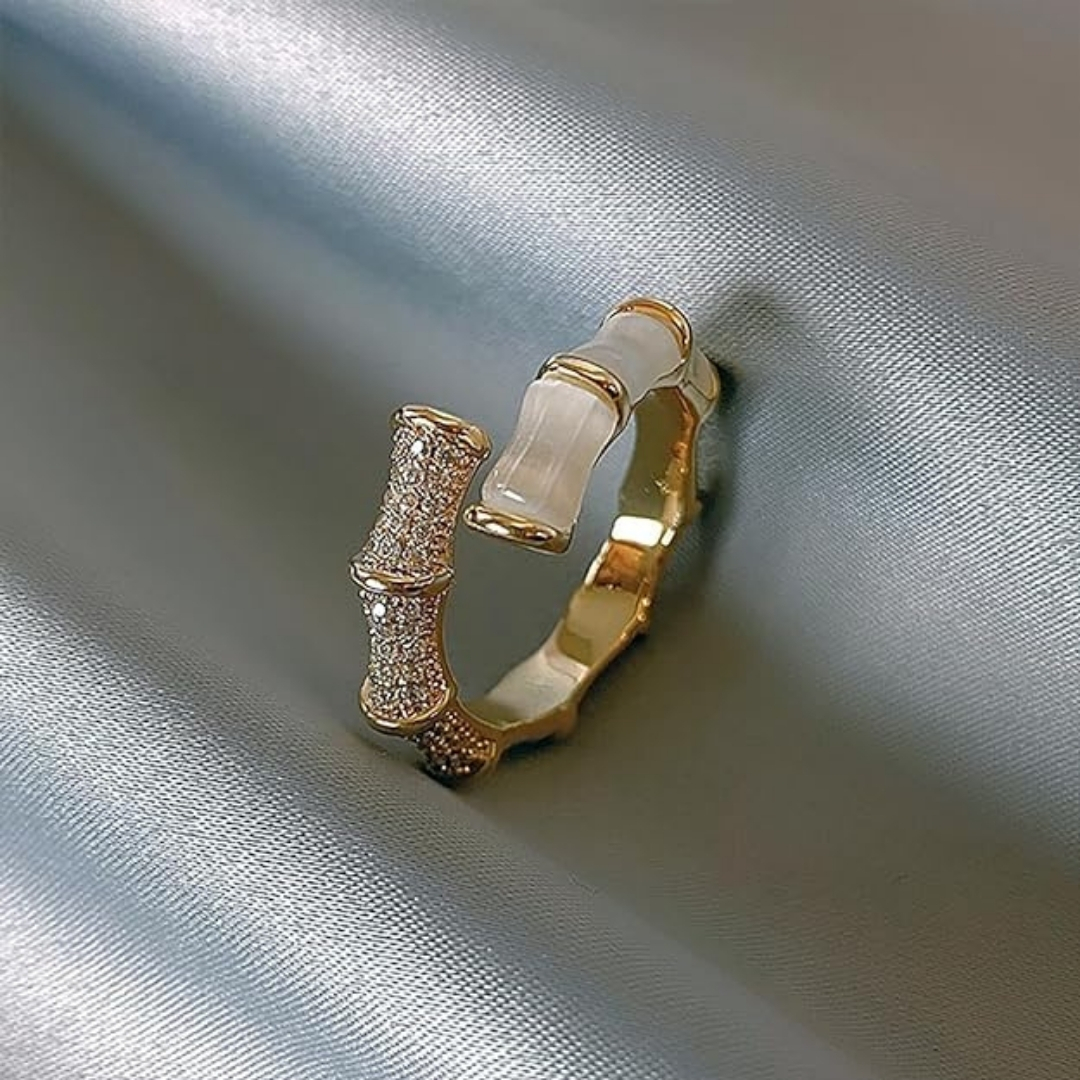 342 Opal Galaxy Bamboo Design Gold Plated Alloy Ring.