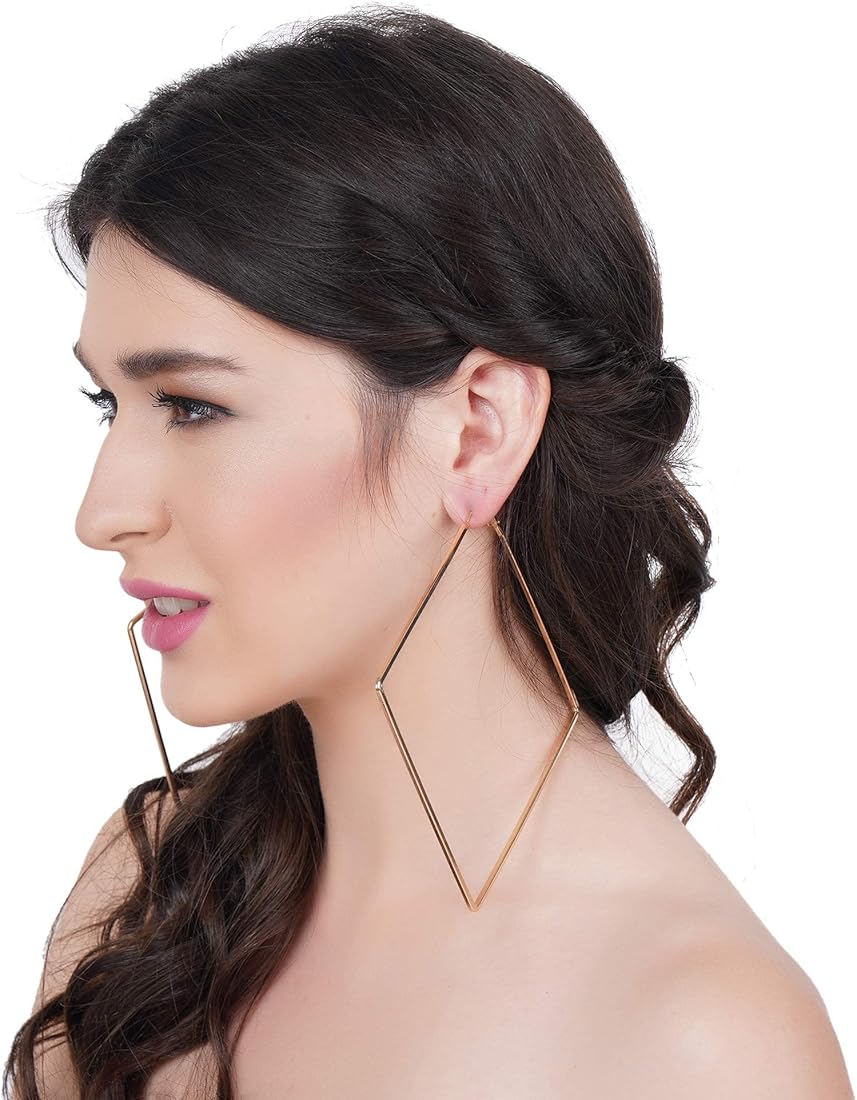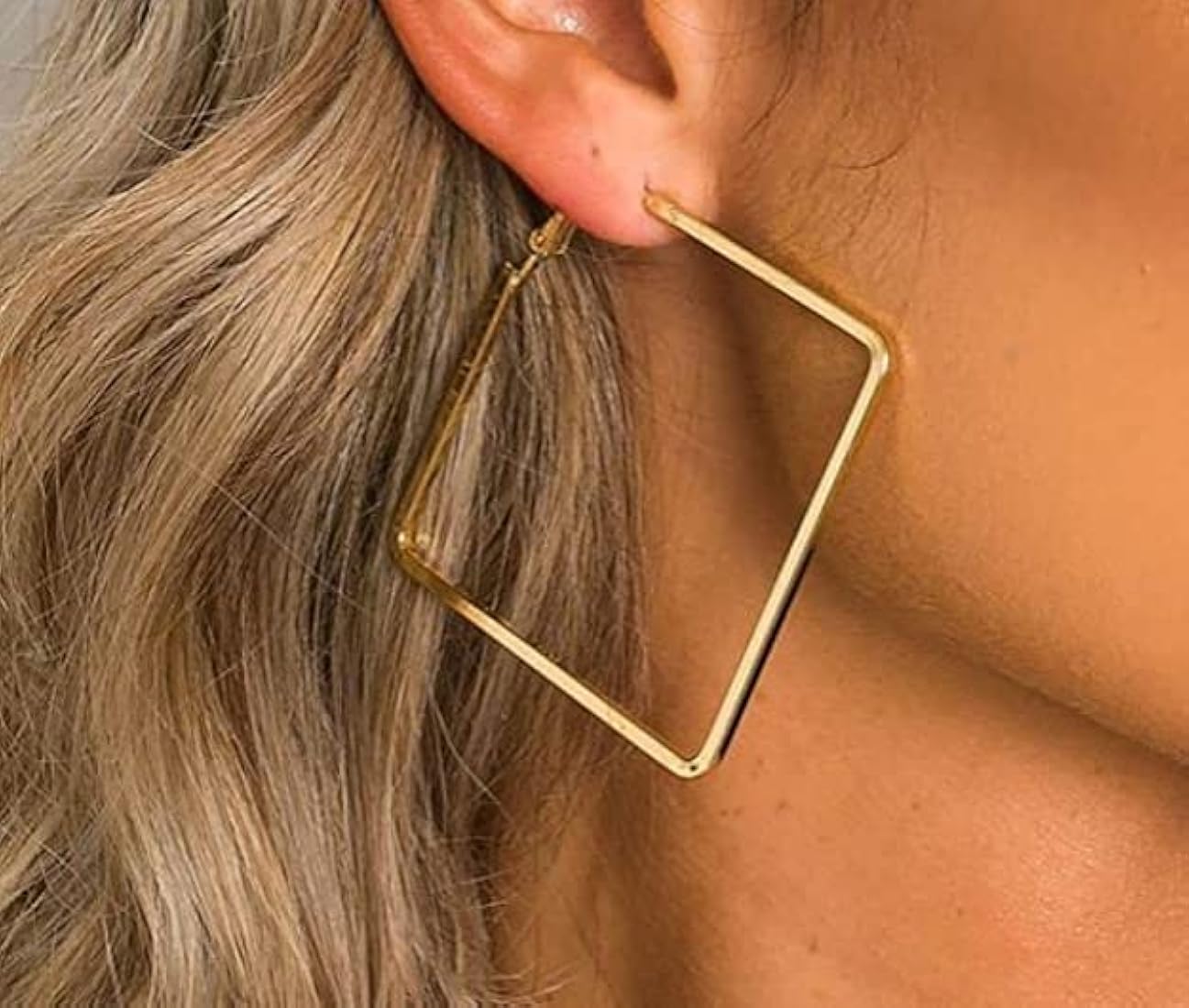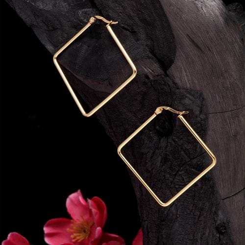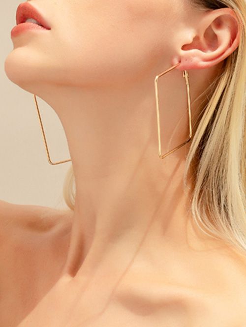 347 Oversized Big Square Gold Plated Earrings