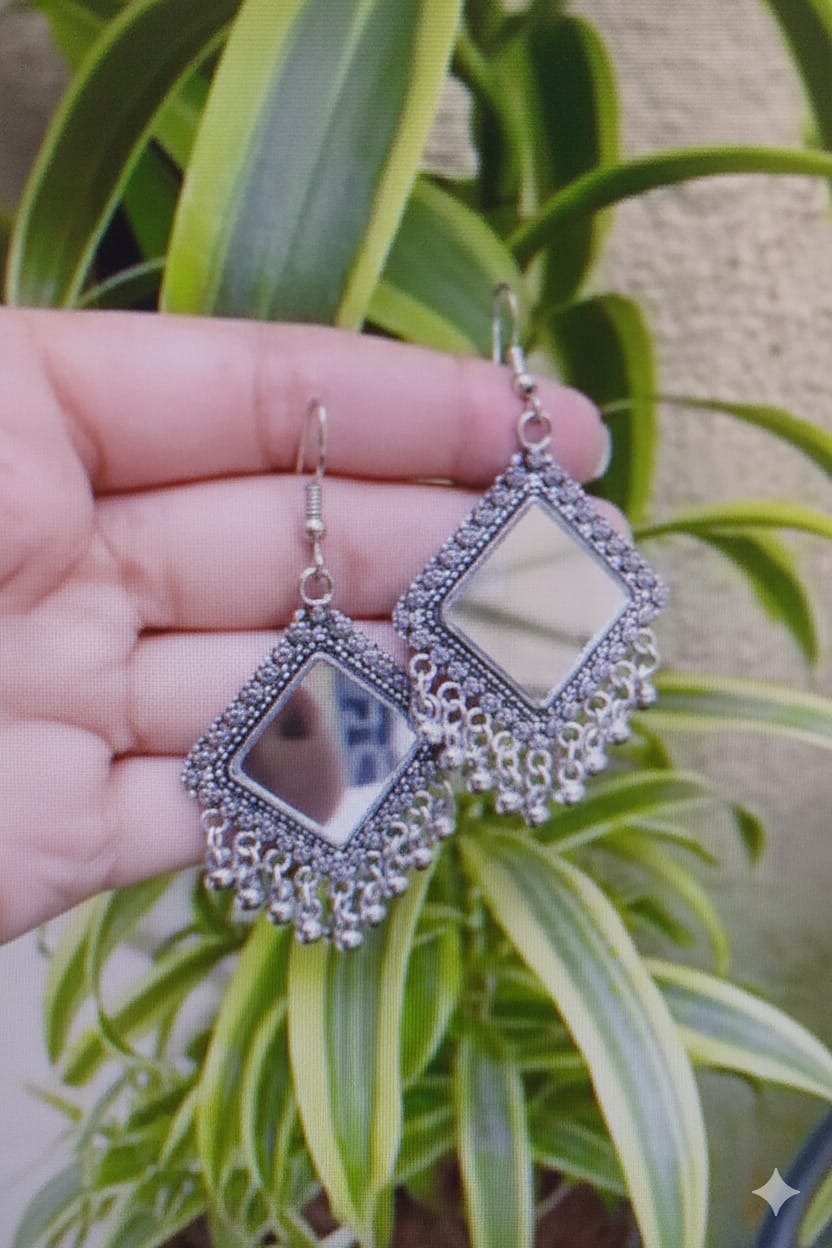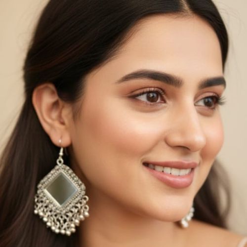 Add a unique sparkle to your ethnic collection with the Ox 12 Mirror Jhumki, a perfect fusion of traditional elegance and vibrant design. Crafted with detailed oxidised silver work, these jhumkis feature tiny mirror embellishments that catch the light beautifully, adding a festive shimmer to your look. The classic bell-shaped design enhances their timeless appeal, while the mirrors lend a modern, eye-catching twist. Lightweight and comfortable, they are ideal for weddings, festivals, or casual ethnic wear. Pair them with sarees, kurtis, or lehengas to complete your ensemble. The Ox 12 Mirror Jhumki is a must-have for a bold yet graceful style.