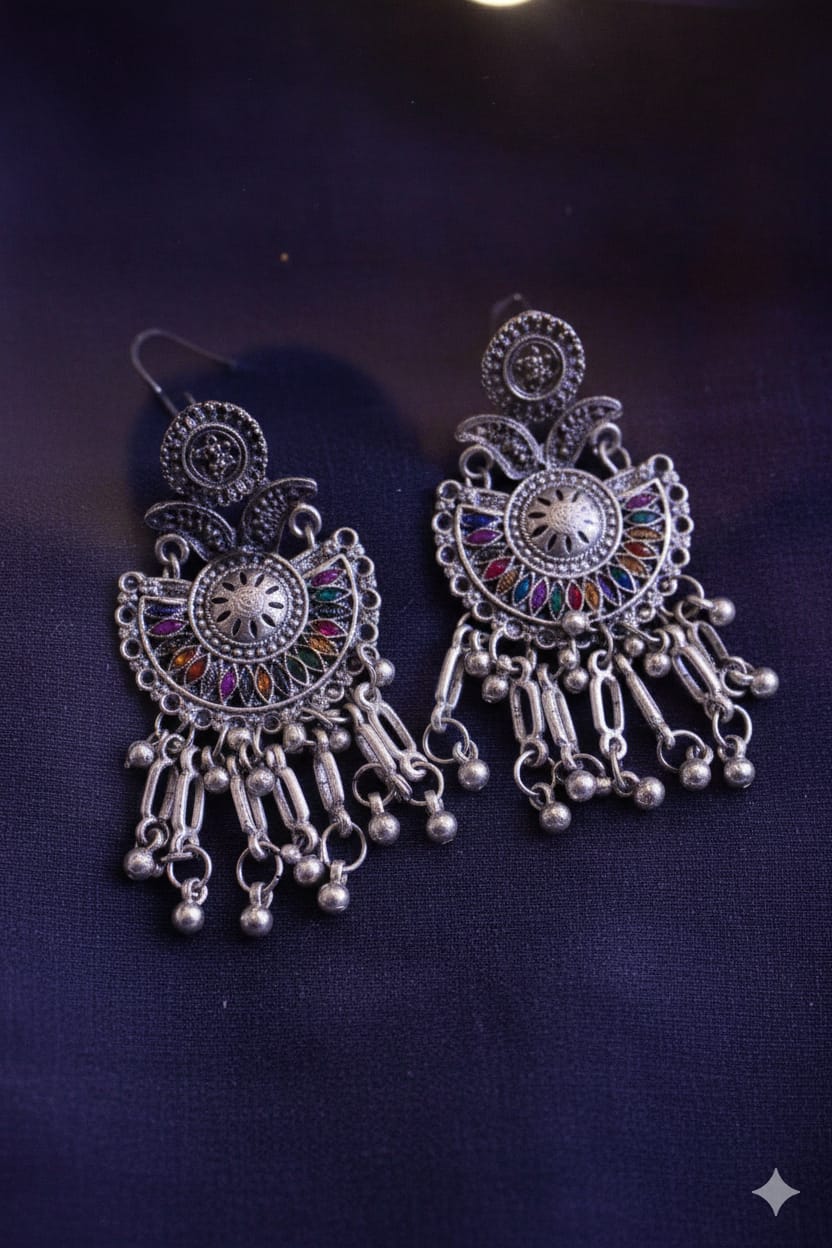 Ox 20 Multi Meena Oxidized Earrings.