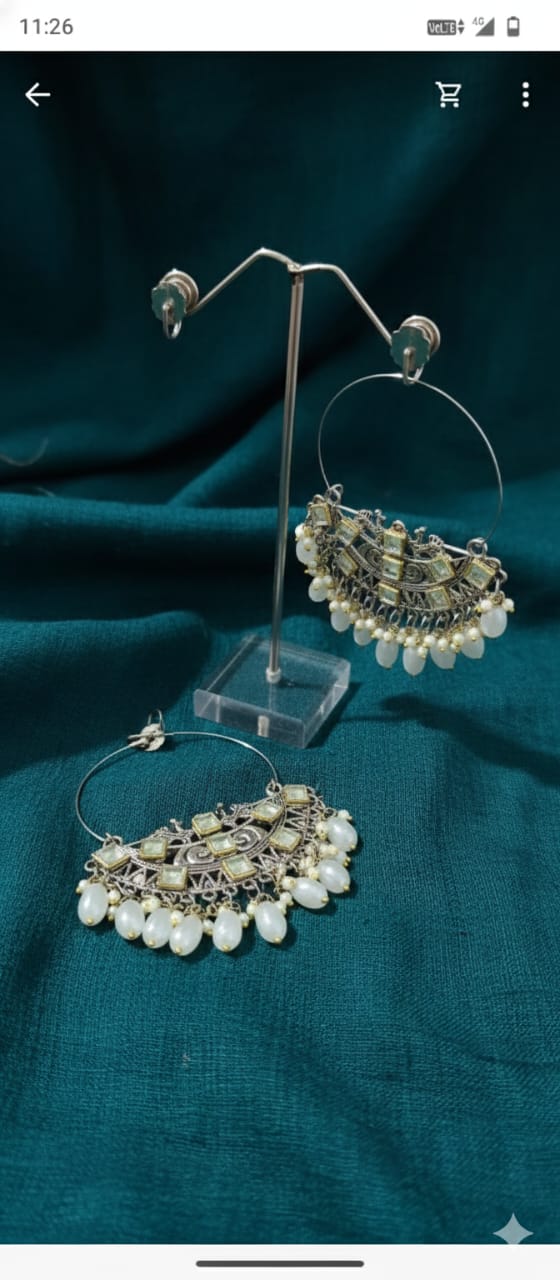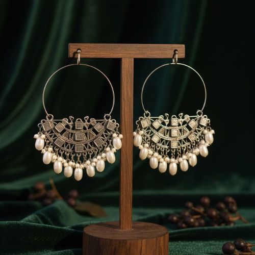 Elevate your elegance with the Ox 38 Crystal Pearl Earrings, a perfect blend of sophistication and traditional charm. Crafted with high-quality oxidized silver, these earrings feature dazzling crystal accents paired beautifully with lustrous pearls, creating a timeless and graceful look. The intricate design and antique finish add a vintage appeal, making them ideal for weddings, festivals, and special occasions. Lightweight and comfortable, they complement sarees, lehengas, and fusion outfits effortlessly. These earrings add a sparkling touch of glamour while maintaining classic ethnic beauty, making them a must-have accessory for those who love refined and versatile jewelry pieces.