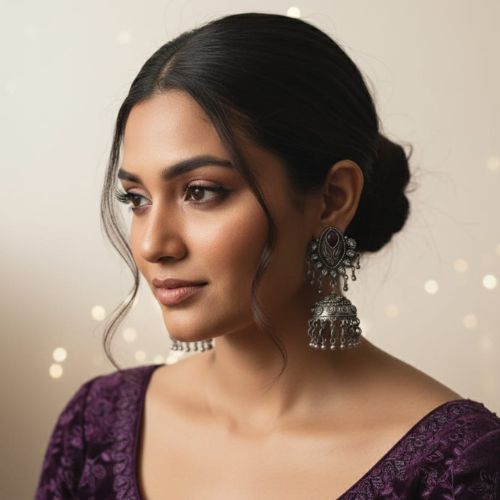 Make a striking statement with the OX 45 Unique Style Oxidized Jhumka JJ039 Earrings, where traditional charm meets contemporary design. Crafted with intricate oxidized silver detailing, these jhumkas showcase a unique silhouette that stands out from classic styles. Lightweight and comfortable, they add an ethnic touch with a modern twist, perfect for festive occasions, weddings, or casual ethnic wear. The detailed craftsmanship and antique finish enhance their vintage appeal, making them a versatile accessory that complements sarees, lehengas, and Indo-western outfits alike. Elevate your jewelry collection with these one-of-a-kind, elegant jhumkas.