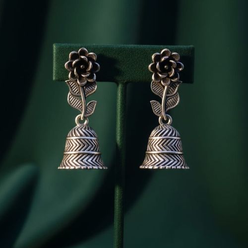 Enhance your traditional look with these exquisite Oxidised Jhumki Earrings, a timeless piece that beautifully combines classic design with intricate craftsmanship. Featuring the iconic bell-shaped silhouette, these jhumkis are adorned with detailed oxidised silver work that adds a vintage, antique appeal. Lightweight and comfortable, they sway gracefully with every movement, making them perfect for festive occasions, weddings, or daily ethnic wear. Their versatile design complements sarees, lehengas, and kurtis, adding elegance and charm to any outfit. A must-have accessory for lovers of heritage-inspired jewelry, these oxidised jhumkis bring a touch of timeless beauty and sophistication to your collection.