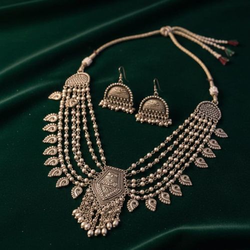 Add a touch of timeless elegance to your jewelry collection with the Oxidised Sets JJ04. Beautifully crafted in high-quality oxidised silver, this set features intricate traditional motifs and fine detailing that reflect skilled craftsmanship. The set includes a statement necklace and matching earrings, perfect for enhancing any ethnic or fusion outfit. Its antique finish and bold design make it ideal for festive occasions, weddings, or cultural celebrations. Lightweight and comfortable to wear, the JJ04 set effortlessly blends heritage charm with modern versatility. Make a lasting impression with this classic oxidised jewelry set that speaks of tradition, beauty, and grace.