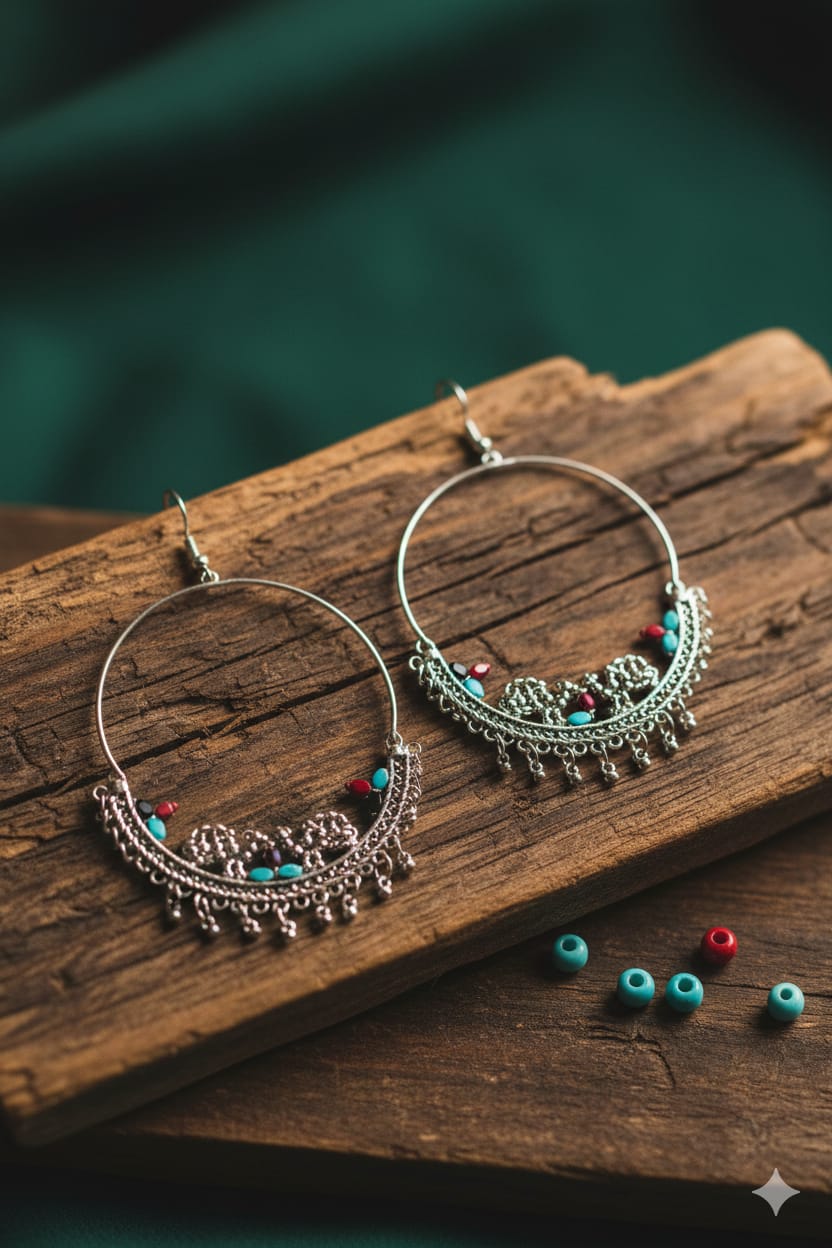 Elevate your ethnic look with the timeless charm of Oxidized Chandbali Earrings. Inspired by traditional Indian design, these crescent-shaped earrings are beautifully crafted in oxidized silver, showcasing intricate patterns and fine detailing. The antique finish adds a vintage touch, making them ideal for festive occasions, weddings, or cultural celebrations. Lightweight and comfortable to wear, they sway gracefully with every movement, adding elegance and sophistication to your outfit. Pair them with sarees, lehengas, or kurtis for a complete traditional look. A perfect blend of heritage and style, these earrings are a must-have addition to any ethnic jewelry collection.