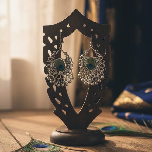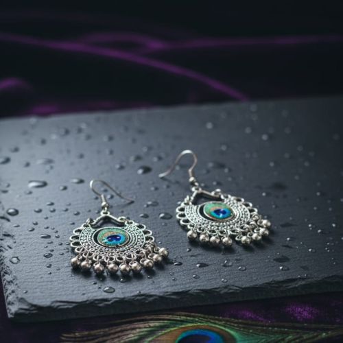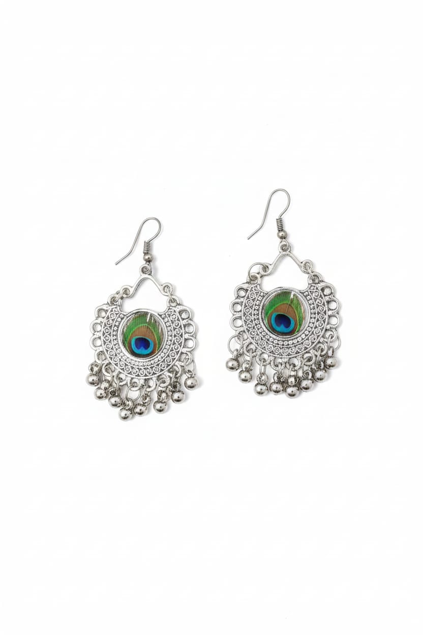 Celebrate timeless beauty with these stunning Oxidized Peacock Design Jhumki Earrings. Expertly crafted in high-quality oxidized silver, these earrings feature intricate peacock motifs symbolizing elegance and grace. The traditional jhumki shape combined with detailed craftsmanship creates a perfect blend of heritage and style. Lightweight and comfortable, they are ideal for festive occasions, weddings, or ethnic wear, adding a touch of sophistication to any outfit. The antique finish enhances their vintage charm, making them a versatile accessory that pairs beautifully with sarees, lehengas, and kurtis. Elevate your jewelry collection with these exquisite peacock-inspired jhumkis.
