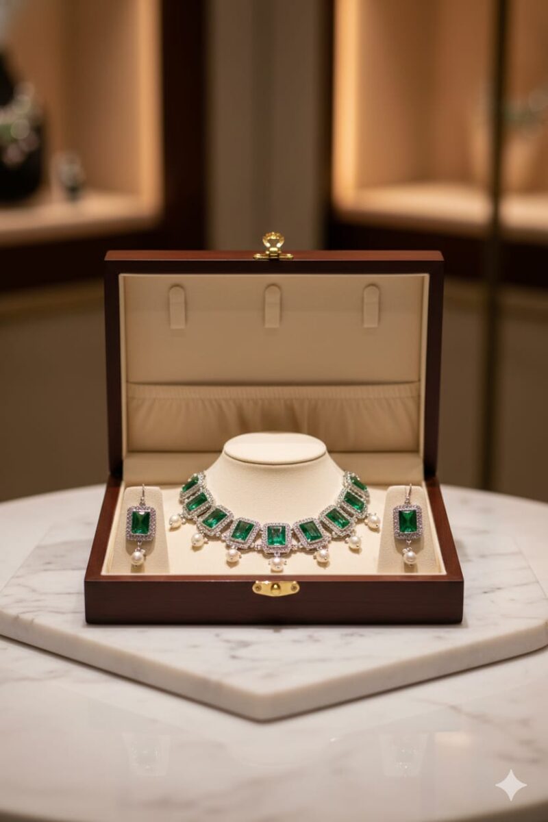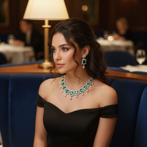 Oxidized Peacock Jewelry Set with Pearls