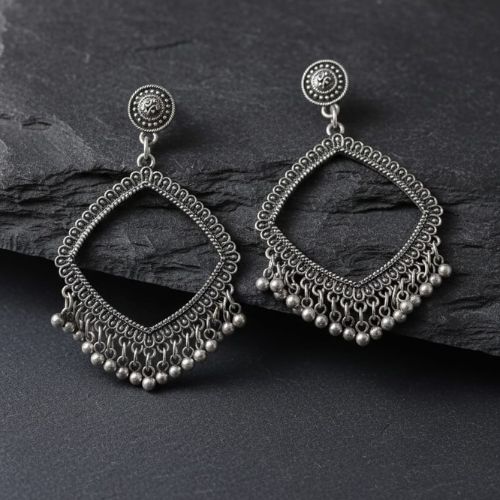 Add a touch of vintage charm to your look with these exquisite Oxidized Silver Jhumka Earrings. Crafted with intricate detailing, these earrings feature a traditional bell-shaped design enhanced by antique silver tones that exude rustic elegance. The oxidized finish gives them a timeless, earthy appeal, making them perfect for ethnic wear like sarees, kurtas, and lehengas. Lightweight and comfortable, they are ideal for everyday wear or festive occasions. The delicate patterns and fine craftsmanship reflect India’s rich jewellery heritage. Stylish yet rooted in tradition, these oxidized silver Jhumkas are a must-have accessory for those who appreciate classic, handcrafted beauty