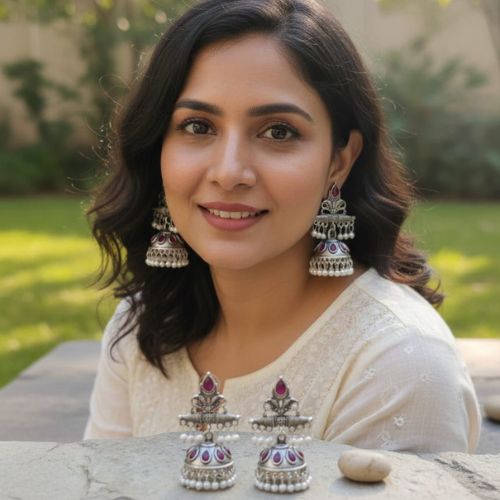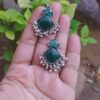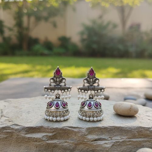 Elevate your ethnic ensemble with these exquisite oxidized silver-plated earrings, thoughtfully designed to blend traditional charm with contemporary flair. The earrings feature a captivating black stone centerpiece, exuding a sense of mystery and elegance. Delicate pearl drops gracefully cascade from the base, adding a touch of timeless sophistication. The oxidized finish imparts a vintage appeal, making these earrings a versatile accessory for various occasions, from festive celebrations to casual outings. Their lightweight design ensures comfort without compromising on style, making them a must-have addition to any jewelry collection.