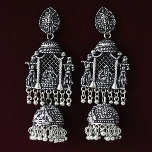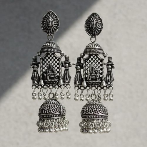 397 Oxidized Silver Radhe Krishna Jhumki Earrings