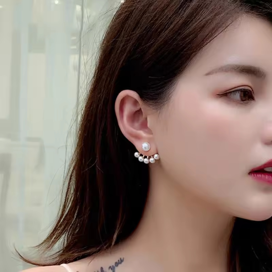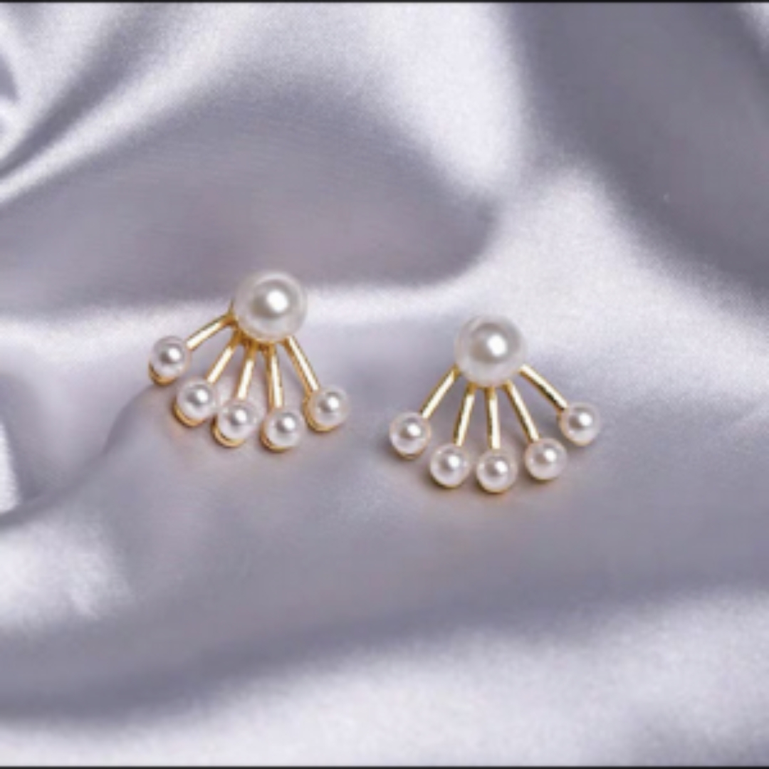 Add a touch of modern elegance to your look with the Pearl Ear Jacket Earrings with a Fan Design, inspired by the delicate beauty of Korean jewelry. These unique earrings feature a classic pearl stud that rests on the earlobe, complemented by a stylish fan-shaped jacket that peeks out from behind, creating a layered and dynamic silhouette. The fan detail adds a graceful flair, symbolizing sophistication and movement. Lightweight and comfortable for all-day wear, they’re perfect for both casual and formal occasions. Elevate your accessory game with these refined earrings that blend timeless pearls with a contemporary Korean fashion twist.