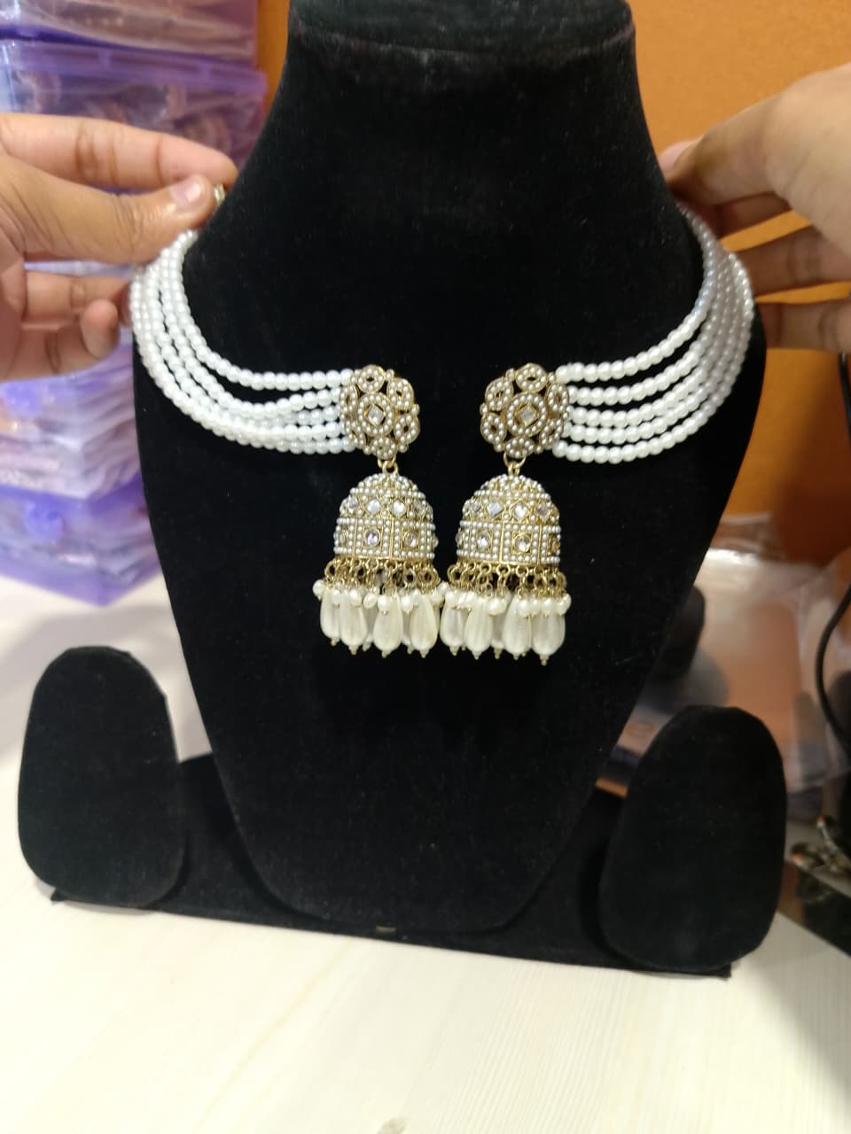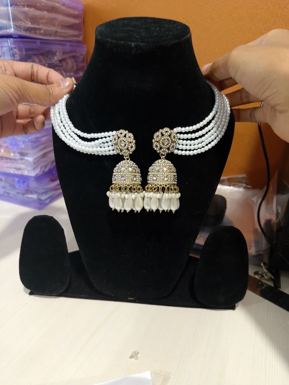 Embrace timeless elegance with this traditional Indian pearl jewelry set, a perfect blend of grace and heritage. Featuring a beautifully crafted necklace adorned with lustrous pearls and intricate detailing, this set exudes royal charm. Paired with matching earrings, it captures the essence of classic Indian craftsmanship, making it ideal for weddings, festivals, and cultural celebrations. The soft sheen of the pearls complements both traditional and fusion outfits, adding sophistication to any look. Lightweight and comfortable to wear, this jewelry set is a symbol of purity and elegance. A must-have addition to every woman’s ethnic jewelry collection.
