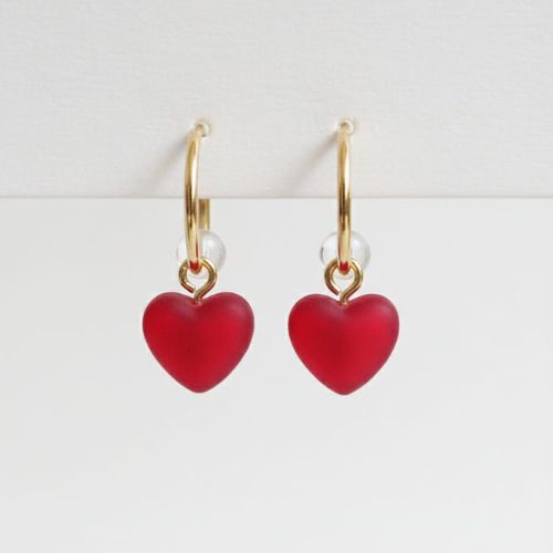 417 Red Heart Hoop Earrings